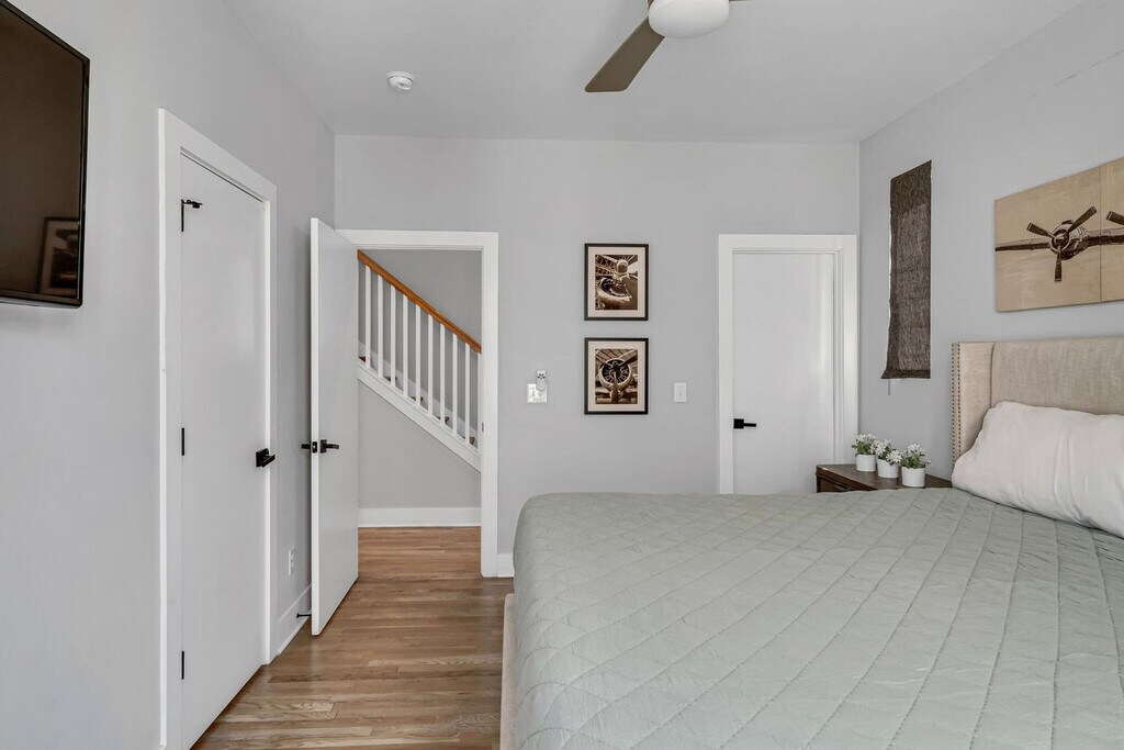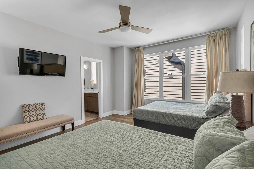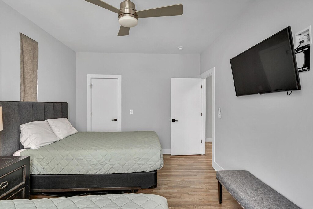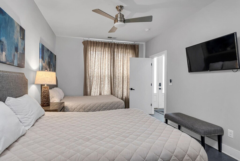 Feel at home in this beautiful modern home, perfect for large groups visiting Music City. Located less than 2 miles from Lower Broadway, Nissan Stadium, Bridgestone Arena, and all the famous Honky Tonks of Nashville, this home offers 4 bedrooms, 3.5 baths, a fully stocked kitchen with bar seating, a spacious living and dining area, and a large rooftop patio with a gas grill. Enjoy the convenience of a two-car garage and driveway parking, along with smart TVs and Wi-Fi. The home features a fully stocked kitchen with bar seating, perfect for preparing meals and entertaining. The spacious living and dining area provides ample room for relaxation and socializing, while the large rooftop patio with a gas grill offers a great outdoor space for gatherings. Early bag drop is available by request for an additional $50. Explore the vibrant neighborhood with nearby attractions such as The Pancake Pantry in Hillsboro Village, just a 3-minute drive away, Sadie's Nashville, a 2-minute drive, and Hopdoddy Burger Bar, a 4-minute drive. Discover the historic Belmont Mansion within 4 minutes and Fort Negley in just 5 minutes. Guests are required to sign a Rental Agreement and the minimum age to rent is 18 years old. Smoking and parties are not allowed on the premises. [SI]