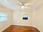 View In 3D: This 1-bedroom, 1-bath duplex offers approximately 600 square feet of comfortable living space and includes a covered carport for designated parking. The living area features low-maintenance wood flooring and a ceiling fan for added comfort. The kitchen is equipped with ample cabinet space, a dual-basin sink, a refrigerator, and a range/oven. The bedroom also includes wood flooring and a ceiling fan while the bathroom features a single vanity and a walk-in shower. As an additional highlight, the owner provides professional lawn maintenance and covers the monthly water and sewer bill as well as the sanitation bill.