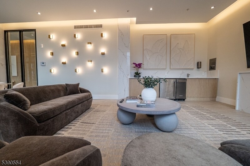 Welcome to 1722 Summit Estates, a premier residence in the heart of Maplewood offering modern luxury & everyday convenience. This spacious 2bed, 2bath apartment with outdoor space spans 1341SF & is thoughtfully designed for both style & comfort. Each bedroom is generously sized, with oversized windows that invite natural light and walk-in closets that provide abundant storage. The primary suite offers a serene retreat with a beautifully finished en-suite bath, while the second bedroom is equally versatile ideal for a guest room, home office, or personal sanctuary. The open-concept living area features soaring 10-foot ceilings, 8-foot doors, recessed lighting, and wood-style flooring throughout, and extends to a Juliet balcony that provides a charming outdoor escape. A chef's kitchen with stainless steel appliances, European custom cabinetry, and quartz countertops creates the perfect setting for entertaining or quiet evenings at home. Modern essentials such as central air & heat, window coverings, & a secure intercom with virtual doorman access add both comfort & peace of mind. At The Summit Estates, residents enjoy boutique-style amenities including a hotel-inspired lobby, resident lounge, fitness center, and pet spa, along with elevator access, garage parking, and on-site storage units. Ideally located just steps from shopping, dining, & the Maplewood train station, this home offers the perfect blend of suburban charm and commuter convenience.** photos are of similar unit