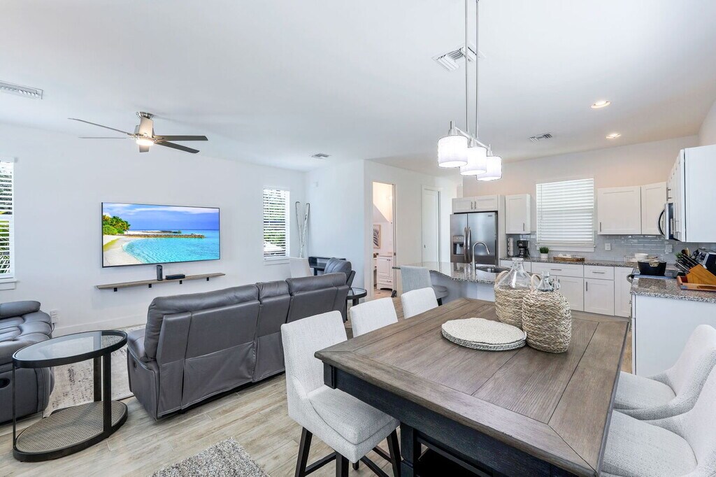 Experience the best of Florida coastal living in this beautifully elevated 3-bedroom,3-bathroom home,perfectly located for those who love the water and the outdoors. With easy access to boating,fishing,and the Pickleball US Open,this property offers both adventure and relaxation. Inside,you'll find a spacious open-concept layout with high ceilings and large windows that fill the home with natural light and showcase stunning views. The living,dining,and kitchen areas flow seamlessly,making it ideal for entertaining or unwinding after a day on the water. Each bedroom is tastefully furnished for maximum comfort,and nearby Bayview Park offers boat and jet-ski launches,picnic areas,and plenty of sunshine. A 11% state and local transient rental tax applies to stays of six months or less. Rent includes electricity (capped at $150/month),water (capped at $75/month),basic cable and internet,trash removal,and lawn service. Available for $4,500/month from September through December 2025,and $5,595/month from January through April 2026.