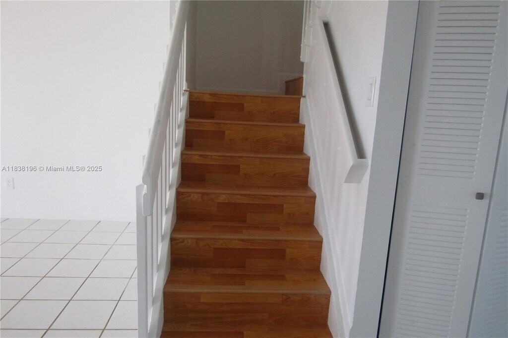 Amazing lake view. Great 4/3 townhouse in desirable Serena Lakes. Recently painted and more. One bedroom and full bath downstairs, tile on first floor and laminated wood floors on stairs, and on second floor. Washer/Dryer in unit. 2 Sliding doors to the patio. Hurricane shutters, aluminum terrace. Beautiful sunset in your back yard. The community has 2 pools, a park, jogging/biking area. 2 assigned parking spaces, guest parking, and street parking. Very well located, minutes away from the turnpike, grocery stores, shopping centers, A+ schools, and more.