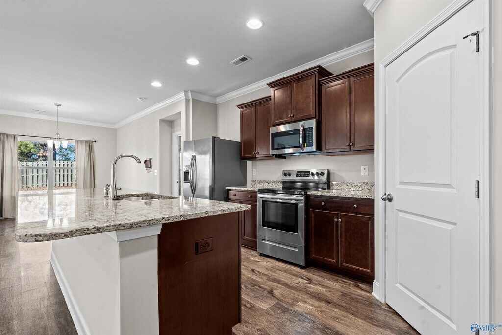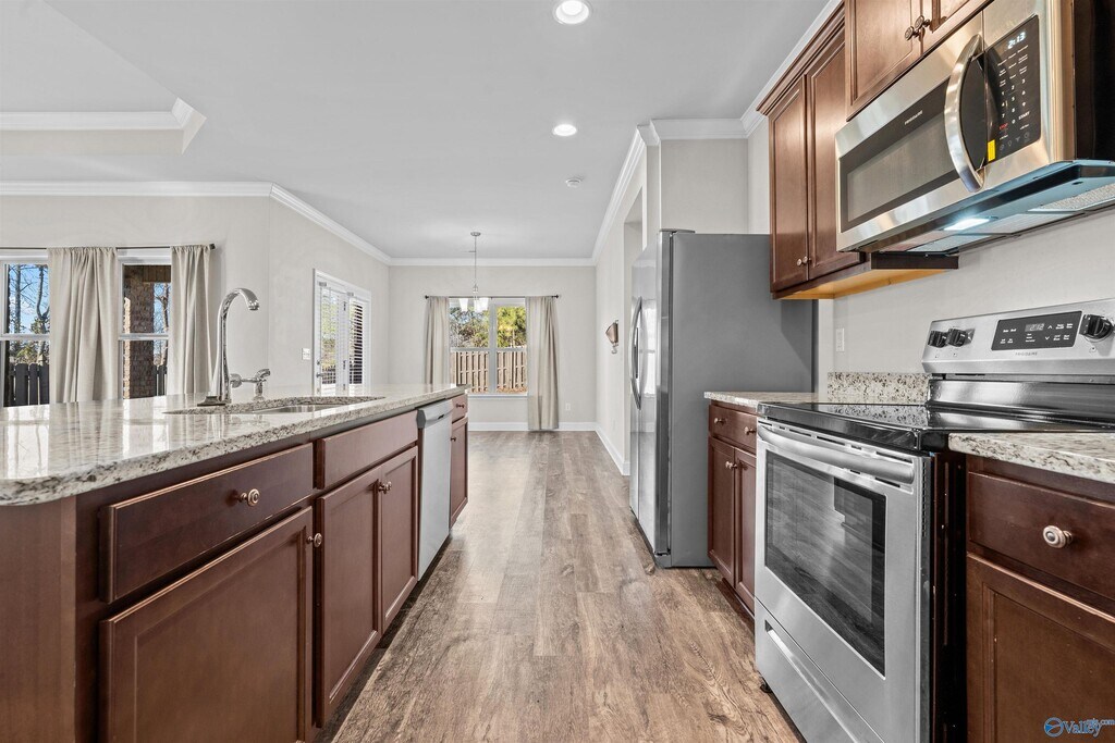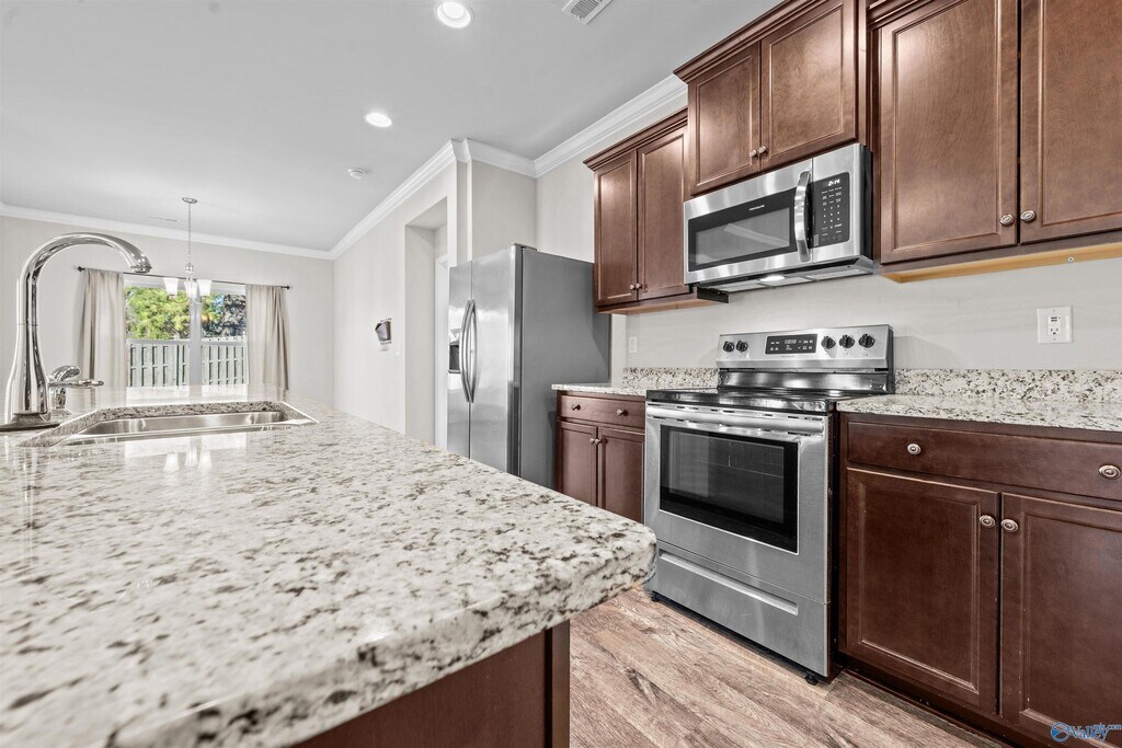 Beautiful single-story 4 bedroom,3 full bath home in close-in neighborhood. Open layout encompasses family room w/trey ceiling & windows onto back patio & yard,dining area w/large window,and eat-in kitchen w/prep island,pantry & recessed lighting. Isolated primary suite w/lovely full bath & walk-in closet. Bedrooms 2 & 3 share full bath and bedroom 4 is tucked away next to 3rd full bath. Privacy fenced yard,2 car garage. Neighborhood pool. Great location less than 2 miles to Clift Farm w/Costco,Publix & numerous restaurants; about 2-1/2 miles to Target,quick commute via Capshaw or County Line.
