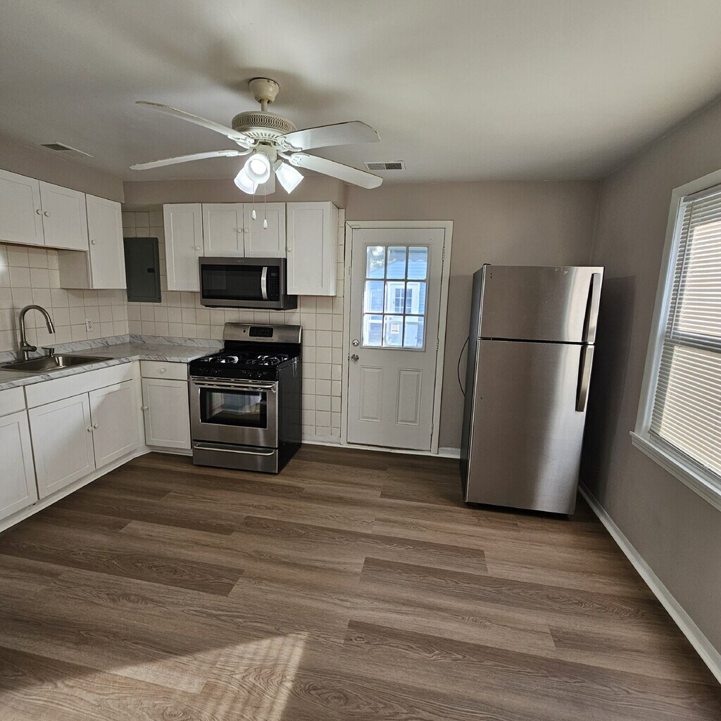 3 Bedroom Bungalow w/ Updated Kitchen and Stainless-Steel Appliances. Spacious Living Room w/ Ceiling Fan and Laminate Flooring Throughout. Eat In Kitchen with Plenty of Cabinet Space. Laundry Closet w/ Stacked Front Loading Washer and Dryer. 2 Bedrooms on Main Floor and Master Bedroom Upstairs with Sitting Room and Bedroom. Detached Garage with Extra Storage Space. Application is Required