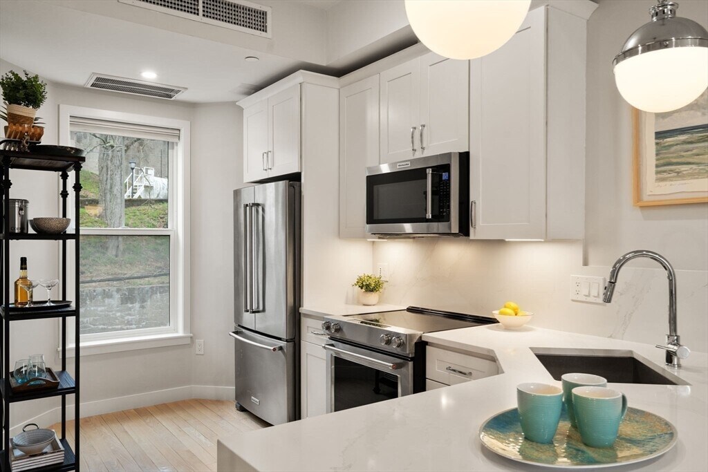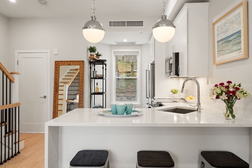 This stunning,5-room,2-bedroom,1.5-bath townhouse offers stylish,modern living in an unbeatable location. Built in 2019 and impeccably maintained,this bright and airy home features a private entrance,open floor plan,high ceilings,wood floors,and oversized windows flooding the space with natural light. The first floor features a gourmet kitchen with quartz counters,stainless steel appliances,and breakfast bar; living room,dining area,and half bath. Upstairs are two spacious bedrooms with generous closets and custom storage,and a full bath with skylight. Enjoy energy-efficient electric systems,central air,heated garage,in-unit laundry room,and storage. A serene patio and shared garden with grill area to the rear. This home has space,light,and a prime Mission Hill location near the Longwood Medical Area,Brookline Village,MBTA Green Line,and Emerald Necklace parks. No smoking. Excellent credit & references required. Tenants Pay: Electric,Gas,and Cable/Internet. MLS# 73418720
