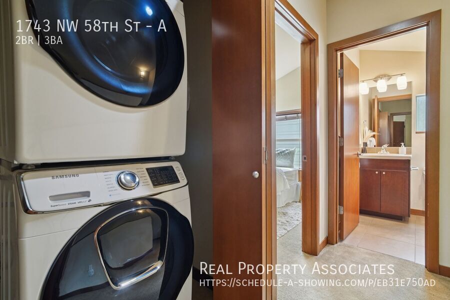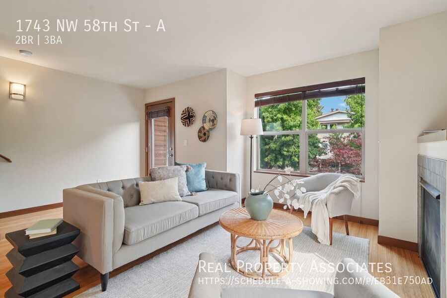2bd/2.5ba Ballard townhome with a Walk Score of 96! Ideally located just blocks from shops, restaurants, a movie theater, and the Sunday Farmers Market, this residence offers the perfect blend of urban convenience and neighborhood charm. The open floor plan on the main level features a spacious kitchen with gas cooking, granite counters, stainless steel appliances, bamboo floors, a cozy fireplace, and a powder room. Upstairs, the top floor includes a primary suite with a full bath, a second bedroom with its own full bath, and in-unit laundry. Enjoy the benefit of an attached 1-car garage with extra storage space, along with an inviting front courtyard and a private deck off the living room—perfect for relaxing or entertaining. Pet allowed on a case-by-case basis with an additional deposit. Monthly pet rent- $35 - 12 Month Lease Available - Tenants are responsible for all utilities - Application: $45 per person/adult - Refundable Security Deposit: $3,550 Renter’s legal liability insurance is required and part of the Benefits Package ($30 monthly). If qualifying legal liability insurance is purchased and provided by the tenant to RPA, the benefit package can be reduced to $15 monthly for reduced benefits. Professionally managed by: Real Property Associates, Inc. Townhouse Washer/Dryer