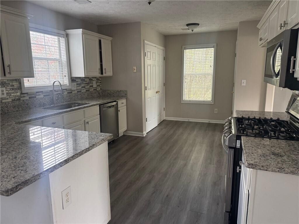 Tenant-occupied — available February 1. Act fast on this spacious 4-bedroom (possible 5th in the finished basement), 2.5-bath home located in the Grayson High School district. Pets negotiable. Enjoy a large, fully fenced backyard with no rear neighbors for exceptional privacy; swing set and trampoline can remain if desired. Inside features new wood laminate flooring throughout, fresh interior paint, and an updated kitchen with granite countertops and a breakfast bar. The living room includes a gas fireplace, plus there’s a separate formal living and formal dining room ideal for flex space, home office, or playroom. Parking and storage are a standout with a 2-car garage plus a third boat garage, offering abundant storage in the third garage/unfinished basement area. The basement also provides backyard access and a bonus/recreation room that can function as a 5th bedroom with closet. Conveniently located minutes from The Shoppes at Webb Gin, with easy access to shopping, dining, parks, schools, and community events in Grayson, Snellville, and Loganville—plus commuter routes nearby. Lease term: 12–24 months. APPOINTMEMT REQUIRED!