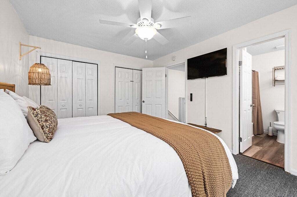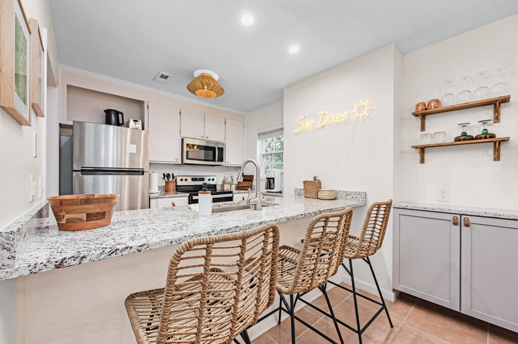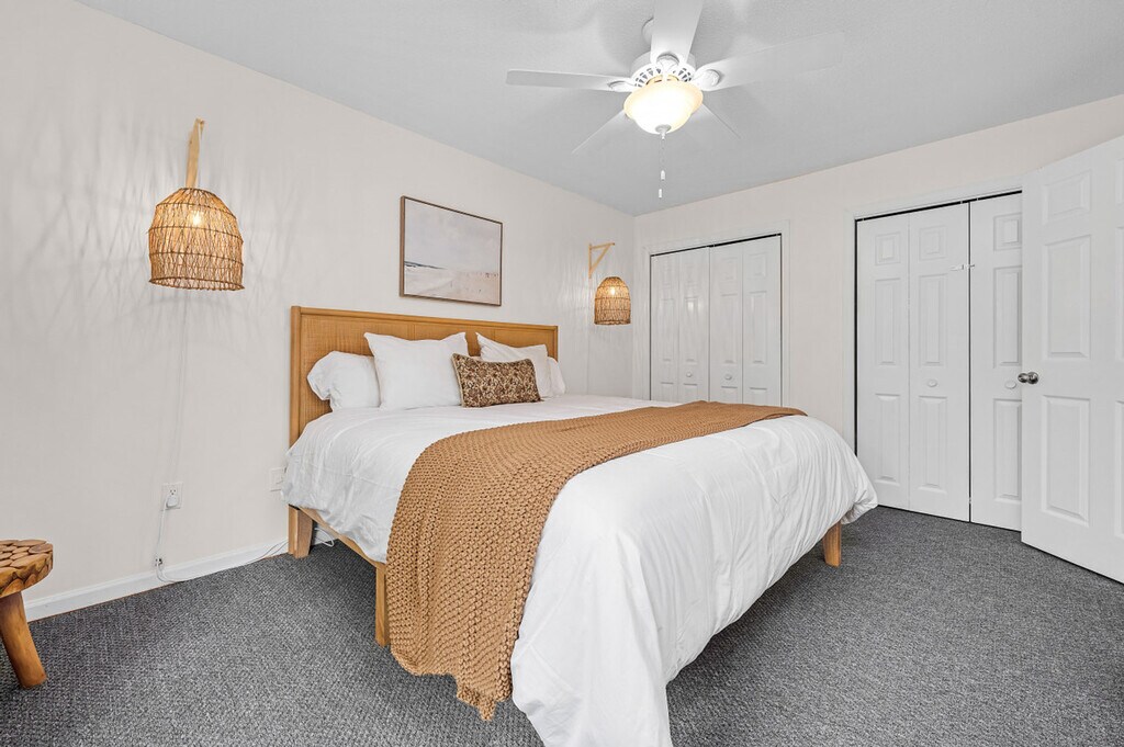Feel at home in this newly renovated 2-story beach house, located just a 5-minute walk from Panama City Beach. This 1156 sq. ft. home features HDTVs in each room, blazing fast Wi-Fi, and board games. You can also enjoy cooking on the barbecue grill and working out at the fully equipped gym, followed by a relaxing soak in the jacuzzi tub. Enjoy access to 4 community swimming pools and on-site mini golf. Maximum occupancy restrictions are strictly enforced by fire code. Loud parties are not allowed out of respect to the neighbors, and there is a security guard on site who will immediately terminate your stay if this rule is violated. Guests must be at least 25 to book. Registration Number: 56118 [SI]