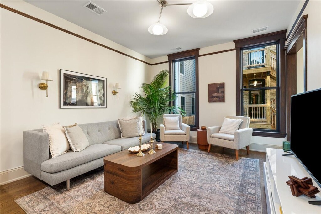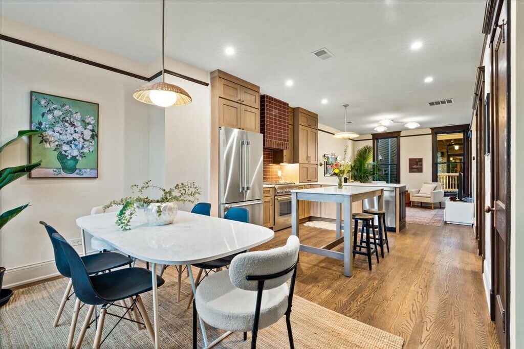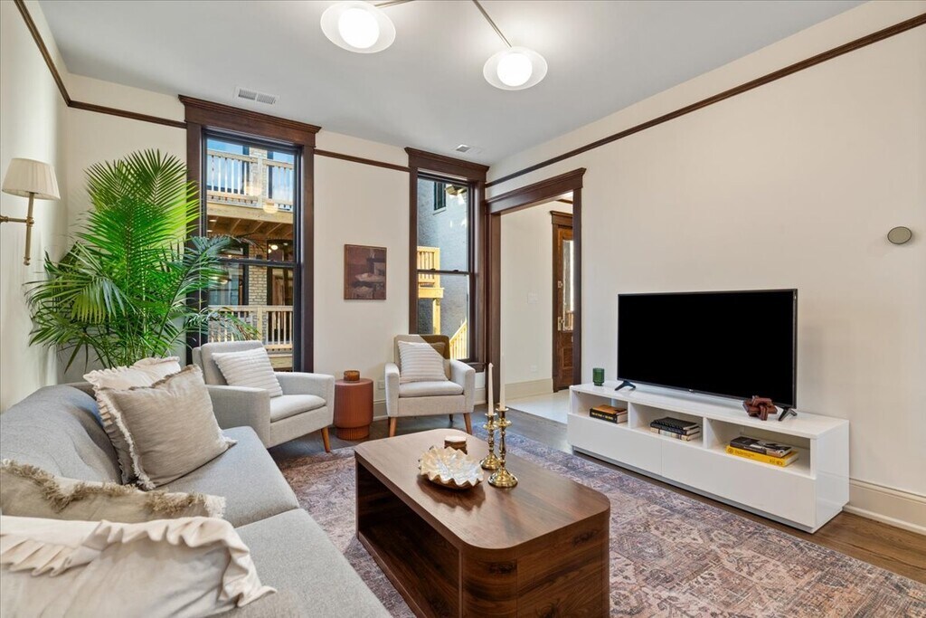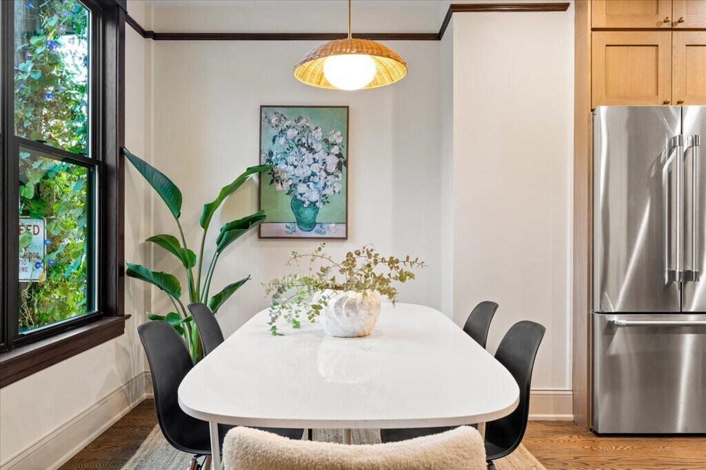 Listing price reflects net effective rent of $5,485 after rent incentive of one month free on a 16 month lease starting Nov 1,with lease amount that reads $5,850. This meticulously designed home offers tons of restored vintage character,incredible natural light and top of the line finishes. This 3BD/2.5BA duplex down features solid white oak flooring,custom built-ins,vintage stained doors and trim,vintage hardware and lighting and at the same time provides a fully gut rehabbed core and top tier designer bathrooms and kitchen. The kitchen is massive and features tons of oak cabinetry and counter space,a top of the line 36'' Thermador range and Thermador dishwasher and fridge. Anne Sacks by Studio McGee tile backsplash and hood surround,floor to ceiling pantry cabinets,custom fluted exposed shelving,and a large island with room for four stools are other highlights in the kitchen. The entire space is far from cookie cutter and larger and more functional than many single family homes. The formal dining area has beautiful vintage wall sconces and an arched built-in dry bar. The large family room is color drenched a moody green color and offers details like a huge wall of custom built-in cabinetry and shelving,a reclaimed coffered ceiling,and access to your private patio and shared courtyard. Without being too open,it flows nicely with the kitchen and creates the ideal hosting layout. There is also a formal living room at the front of the home along with a foyer and coat closet and a beautiful powder room with tons of wall moldings and design details. The lower level has very high ceilings,tons of natural light,beautiful woodwork and built-ins and offers a large primary suite with an incredibly designed bathroom and a walk-in closet,two more large bedrooms and an additional full bathroom with timeless finishes. There are numerous storage areas,a large utility/laundry area and a sitting nook in the hall. Exterior parking available 2 blocks away - $125/mo. Other neighborhood options available as well. MLS# MRD12496698 Based on information submitted to the MLS GRID as of [see last changed date above]. All data is obtained from various sources and may not have been verified by broker or MLS GRID. Supplied Open House Information is subject to change without notice. All information should be independently reviewed and verified for accuracy. Properties may or may not be listed by the office/agent presenting the information. Some IDX listings have been excluded from this website. Prices displayed on all Sold listings are the Last Known Listing Price and may not be the actual selling price.