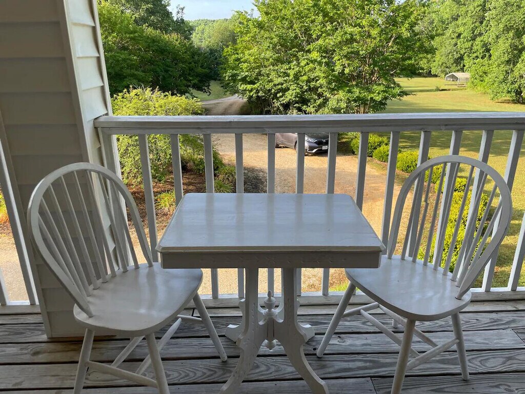 Feel at home in this private studio with a private entrance. Enjoy the beautiful porch balcony view of the 5-acre quiet lawn filled with lots of birds singing, small animals, and deer roaming. This studio is fully equipped with a full-size refrigerator, full stove, all the kitchen utensils and cookware, and spacious cabinets. It also features a nice-size closet and a full-size private bathroom. In addition to your private studio and private bath, you'll also feel free to roam the grounds and enjoy a little nature. On the first floor, enjoy a game of billiards on our regulation-sized pool table. Out back is a gas grill with patio furniture to enjoy. Depending on the time of the year, you can enjoy soaking up a few rays or the fire pit (fire wood provided). Large upper and lower covered porches make for relaxing beverage consumption. Let either of the two porch swings take you 'back in time' to unwind. Great space available for boaters, fisherman, and hunters. The house is available for family gatherings, weddings, and your favorite fundraiser event. Enjoy a delicious breakfast on the top porch with humming birds and the back patio for a beautiful sunset. A front-loading washer and dryer are available for your use. Although just off the main thorough fare, you'll be staying on a 5-acre estate so you'll feel secluded. The amount of interaction will be up to you. [SI]