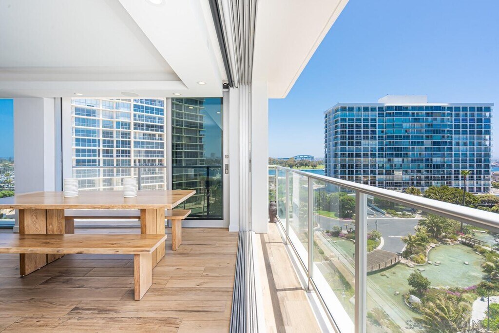 This corner unit is located on the 6th floor of Las Palmas Tower at the highly desirable Coronado Shores with views south to Mexico and across the bay to the Coronado Golf Course,Bay and Bridge. The spectacular arrangement of the sliding windows allows for an indoor/outdoor feeling as if you are perched right on the beach! Rise and shine to enjoy your coffee while watching the crashing ocean waves. A short stroll to the beach and beach club for sunset cocktails. This 3 bedroom,3 bath unit has 2 primary bedroom suites with king beds and a third bedroom with 2 double beds. Gourment kitchen,designer quality furniture,luxury linens and 2 car garage parking space. MLS# 250036683