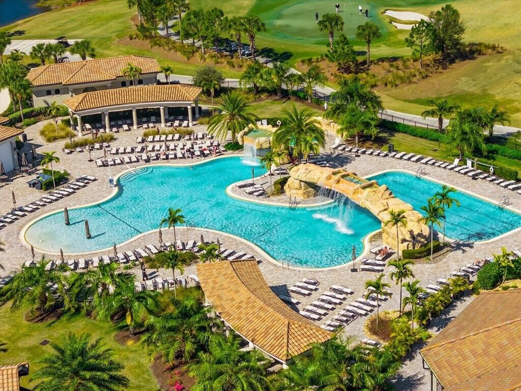 Welcome to this beautiful Condo named "Paradise Found" at Lakewood National Golf Club. Whether your definition of paradise is enjoying a wide variety of outdoor sports, power shopping at the huge selection of area malls and specialty boutiques, or sunning at our resort pool or our world renowned beaches, you can experience it all while staying at our NEW 2 bed/ 2 bath condominium overlooking a picturesque lake and one of Lakewood National’s TWO Arnold Palmer-designed championship golf courses. Golf – Our club membership is transferable to you for a fee to you during your stay. This golf course recently ranked as one of the Top 50 courses in all of the U.S. by Golf Advisor and the #3 public accessible course in all of Florida!) Fittingly, it’s also home to the PGA Korn Ferry Tour LeCom Classic pro tournament each year. Recreation – 8 lighted Har-Tru tennis courts, two pickleball courts, a bocce ball court, a 24-hour professionally equipped fitness facility with full-time trainer and activities director, locker rooms, and a relaxing full-service Utopia Spa for pampering afterwards. Shopping – Enjoy St. Armands Circle with its plethora of boutiques, Lakewood Ranch’s University Town Center Mall, the Ellington Premium Outlet Mall, or the multitude of shops in each of the 20+ villages throughout Lakewood Ranch. Explore any of Sarasota’s nationally recognized white sand beaches only 30 minutes away - Lido Beach, Longboat Key, Anna Maria Island, and, of course, #1 rated Siesta Key Beach! Closer to home, experience the good life sunning by the zero-entry resort pool surrounded by palm trees and waterfalls, all while sipping a cool drink from the nearby Tiki Bar. Home in Paradise – Did I mention it’s BRAND NEW? You’ll surely enjoy our coastal-style condo, fully outfitted with everything you need for a relaxing visit. Enter into a luxurious kitchen with all white cabinets, marble-look quartz counters, and stainless steel appliances. Just beyond, the nicely appointed dining room and living room (with 65” 4K Smart TV) are open to the kitchen so you have a fantastic view to the lake and part of the golf course, not to mention the screened-in lanai seating area, which is great for relaxing anytime. The Master bedroom has its own view of the lake and golf course, and is outfitted with a king size, hotel-quality mattress, 50” 4K Smart TV, two walk-in closets and an en-suite bath complete with quartz counter tops and a large walk-in tiled shower. The Guest bedroom is outfitted with a queen bed, nightstands and a separate dresser to store your personal belongings. (A rollaway bed is also on hand for that extra 5th guest.) Need a tub? The second full bath (next to the guest bedroom) has a tub/shower combo, and includes the very convenient in-unit, full sized washer and dryer set. There will be a transfer fee of $642.00 if the guests want to have all the amenities transferred which will include a golf membership to you, for the entire length of their stay. There is a charge per round per person of $75 for 18 holes and $45 for 9 holes each time you want to play. Prices are subject to change. Availability Strating April 1st - December 2026 for Long Term January 1st -March 31st, 2026, has been reserved & booked!!