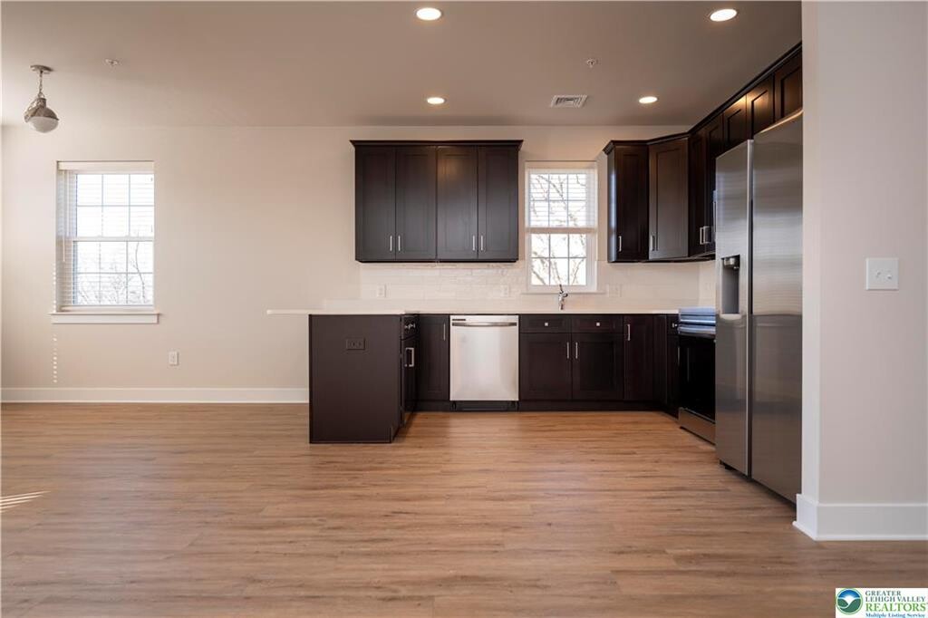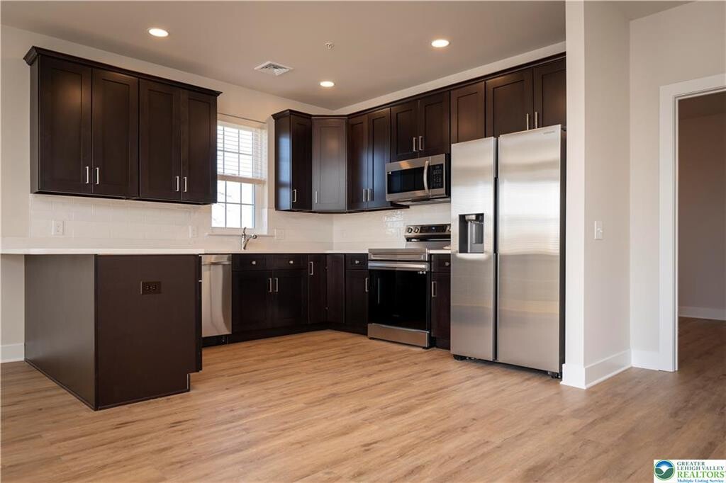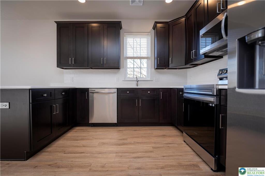 Private, modern, and quiet third floor 2 bedroom 2 full bathroom apartment located close to Heimple Park and within walking distance of downtown Bethlehem. The kitchen is modified with upgraded cabinets with quartz counter tops, stainless steel appliances, full size refrigerator with ice/water dispenser. Full size washer and dryer in each apartment! The primary shower has full shower door and secondary bathroom is modified with a shower/tub. Luxury vinyl flooring throughout and horizontal blind window treatments throughout. The building is equipped with a full security system, including exterior and interior common area video surveillance. Key fob for front door entry with call/monitor system to guest entry. High efficiency heat pump that provided central heating/cooling. New bike storage shed to be available!