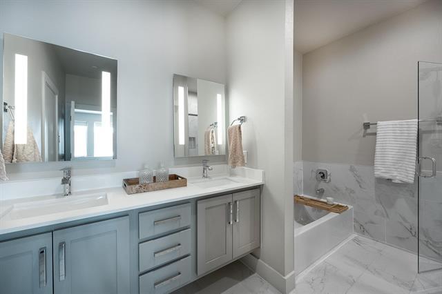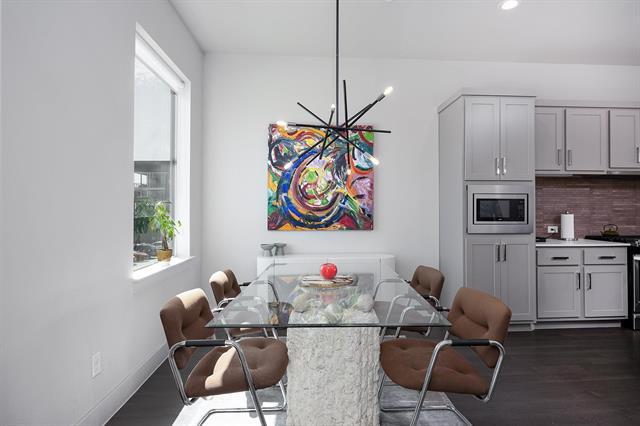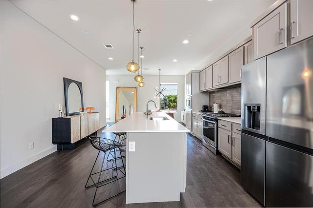 Wonderful townhome, contemporary modern style, with 2 large bedrooms plus a flex room or office, 3 bathrooms, with private rooftop. Large windows highlight the stylish open-concept space with modern kitchen premium finishes such us quartz countertops, huge island, custom cabinets and expansive windows. Hardwood floors all over the townhome no carpets, luxury finishes throughout. First floor boasts bedroom with in-suite bathroom with walk-in shower. This can be a guest room, second primary or an office. Spacious primary bedroom suite featured on 3rd floor with large sitting area, walk-in shower + separate soaking tub, walking closet and dual sinks. Flex space can be an office, gym or a 3rd small bedroom. Dallas views on your expansive private rooftop with dinning and seating area. All light fixtures have been upgraded. Two car garage in the unit and storage. All within a few minutes of entertainment districts, of Lower Greenville, Knox-Henderson, Downtown, Uptown and Deep Elum. Fridge, washer and dryer are included on the lease price.