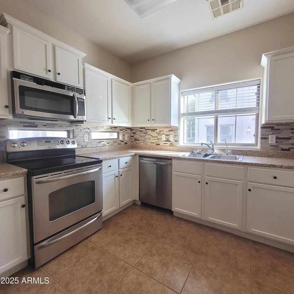 Welcome home to this bright and inviting 3BR/3BA townhome in a safe,quiet neighborhood! Enjoy a rare first‑floor bedroom and bath plus two spacious master suites upstairs,each with walk‑in closets. Solar panels help cut electricity costs,and the whole‑home water softener adds comfort. Relax on the private covered patio,enjoy the attached garage,and let the HOA handle all lawn care. With the elementary school next door and a park just a short walk away,this location is unbeatable. Monthly fees: $119.57 HOA fee $50/month resident benefit package