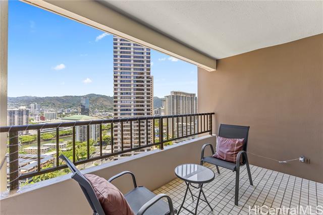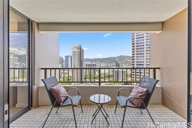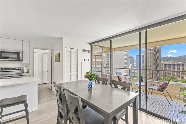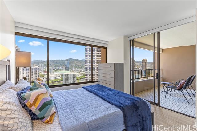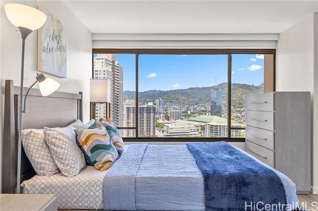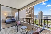 Extra large studio, fully furnished, on a high floor with mountain view. Convenient location, across the street from Waikiki beach, one block from Ala Moana Shopping Center. Full kitchen with washer/dryer in the unit. Covered parking. Great amenities with fitness rooms, pool, hot-tub, BBQ, Sun Deck and restaurants.