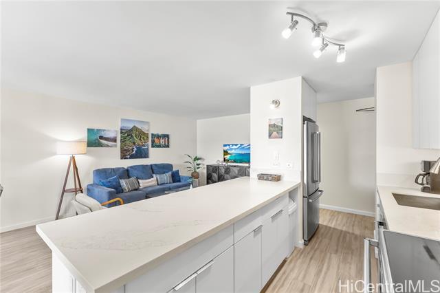 Enjoy Sunset everyday and Friday Firework from Living and Lanai! Totally furnished, tile floor, renovated bath, kitchen. Secured condo with pool, fitness, BBQ grills.... walk to beach. HI-speed internet, Cable including. Great Parking stall comes with. Step outside & enjoy the resort-style amenities right at your fingertips. Take a refreshing dip in the sparkling pool, unwind in the soothing hot tub, or stay active in the on-site fitness center. Savor the breathtaking views of iconic Diamond Head from the comfort of your own home or walk to beach and explore the neighborhood just steps away. With covered parking and lush recreation area, Discovery Bay provides the ultimate in modern living. The condo is the perfect haven for those seeking to immerse themselves in the beauty and energy of Honolulu. For this Summer Stay, 30days Minimum $5900+GE/TAtax, cleaning fee $250+tax. or $4550+GET+Electricity for 6mo+.