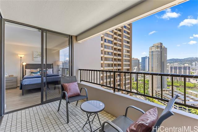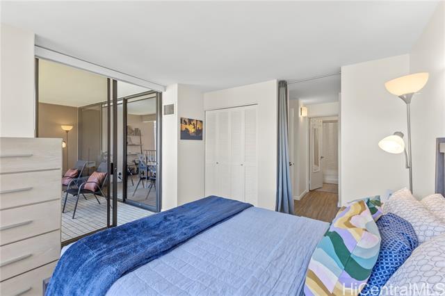 Rent: $2,500+GET High floor, Ocean view unit! A murphy bed provides additional living space. The bath includes a large walk-in shower, floating vanity, and full-sized stacking W/D. Well-maintain, great amenities, convenient location across from Ilikai Hotel. Short walk to the beach, shopping, and dining.