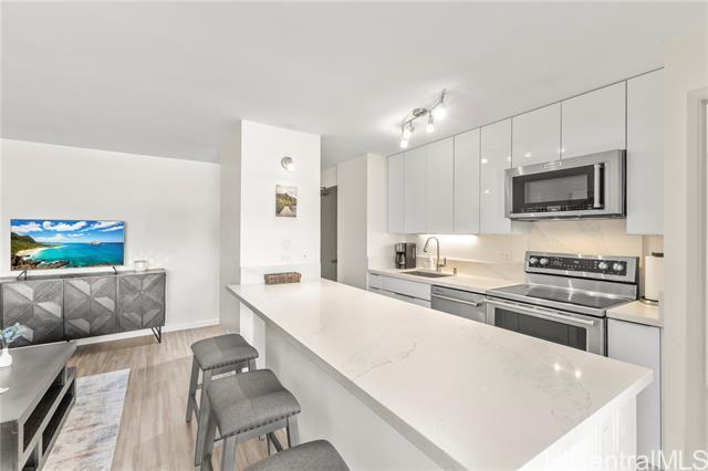 Renovated Furnished 1-Bedroom Condo with Parking - Available from September 15, 2025 through May 31, 2026 (Minimum 6-Month Lease) - Rent: $3,700/month + GETax - Security Deposit: $3,700 - Lease Term: Minimum 6 months (from Sept 15, 2025 through May 31, 2026) - Utilities: Tenant pays electricity. All other utilities included. - Wi-Fi & Cable: Included - No pets, no smoking - Beautifully renovated and fully furnished 1-bedroom, 1-bathroom condo with 1 assigned parking stall in the highly desirable Discovery Bay building. The unit is on the cooler side of the building and features an in-unit washer & dryer. It comes fully stocked with dishes, utensils, towels, and small appliances, while the kitchen is equipped with premium KitchenAid appliances. From the bedroom and patio, enjoy refreshing mountain and city views as well as outrigger canoes paddling by on the Ala Wai. - Building Amenities: Swimming pool, Sauna, Fitness center, 24-hour security - Location Highlights: Short walk to the beach, Near Ala Moana Shopping Center and Waikiki, Surrounded by supermarkets, restaurants, and many shops - Enjoy modern island living with resort-style amenities in a prime Waikiki location!