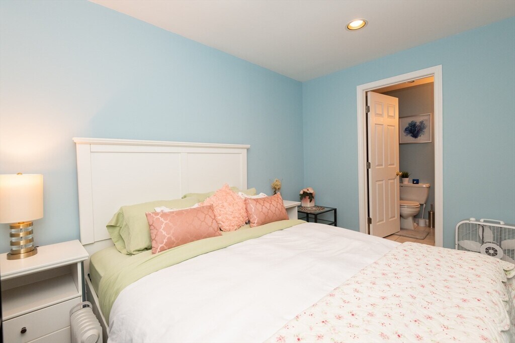 An Exceptional Townhouse for Lease in Bishops Forest Drive in Waltham. Enjoy refined living in this beautifully updated townhouse in the highly sought-after Bishops Forest community, with a swimming pool, tennis & pickle ball courts, and other recreational amenities. The main level features 9-foot ceilings, hardwood floors, and a well-appointed kitchen with granite countertops, set adjacent to a separate dining area and a stylish powder room. Upstairs, the serene primary suite offers vaulted ceilings, a spa-inspired en-suite bath, a walk-in closet, and access to a private deck. A spacious second bedroom with its own full walk-in closet provides comfort and privacy. The finished lower level includes a family room with a fireplace and access to the rear yard, a custom home office, a guest bedroom with an en-suite bath, and a laundry room. Additional highlights include an attached one-car garage, central air and vacuum, and a private patio. Move-in ready luxury—schedule your private showing today.