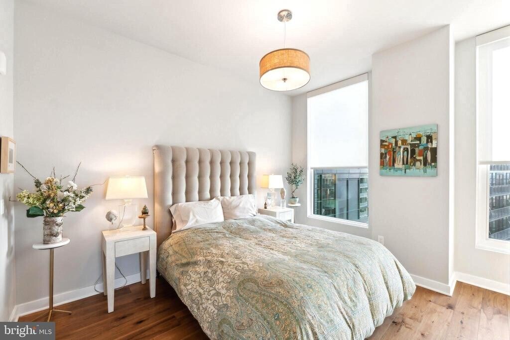 Rare opportunity in practically new (built 2021!) luxury condo in the heart of Rosslyn – sophisticated urban living at its finest. This corner unit residence offers a spacious living and dining area ideal for entertaining. Features include 7-inch hand scraped hickory flooring, floor-to-ceiling windows, and an oversized balcony. Top-of-the-line chef’s kitchen with Thermador appliances, a wine fridge, Snaidero cabinets, and Quartz countertops and a waterfall island. Stunning baths feature heated flooring, Bardiglio marble, Brizo faucets and spa-inspired glass showers. A separate laundry room is fitted with cabinets, a laundry sink and a front-loading washer and dryer. Building amenities include white-glove front desk concierge services 24/7, double level fitness center, and outdoor swimming pool. You’ll love the huge two-level rooftop club room with grills, outdoor dining spaces, and stunning views. Conveniently located just blocks to the Rosslyn and Courthouse Metro Stations on the Blue, Orange and Silver lines with a walk score of 94. Just across the bridge from Georgetown for additional shopping and dining options. Convenient to downtown Washington DC and Reagan National Airport. Two assigned parking spaces convey as well as a large storage unit.