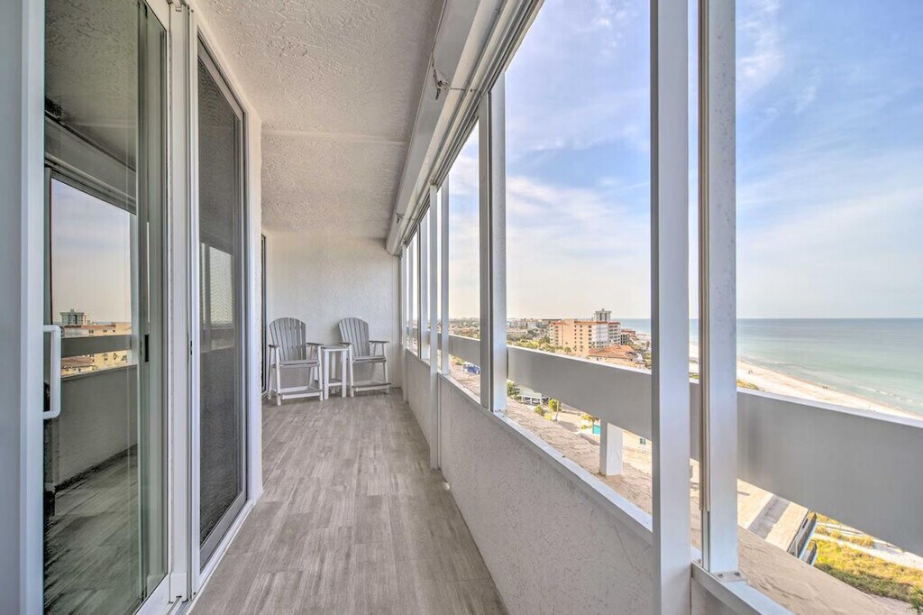 The advertised rate of $4,113/month is the lowest available price, based on a 1 month(s) stay with a move-in date of September 9, 2026. Rates vary depending on the duration of stay, season, and other parameters. For exact pricing and additional pricing components, please visit our website and enter your desired move-in and move-out dates. The rate is applicable when billed upfront; it can be higher if billed in multiple payments. Feel at home in this charming Florida abode, a beachfront 2-bedroom, 2-bath apartment on the 11th floor (step-free access via elevator) in Redington Shores. With the sand and surf right outside, it's the perfect place to reset and relax. This sun-soaked apartment offers a spacious balcony and is fully equipped with stainless steel appliances, a Cuisinart drip/pod coffee maker, dishware and flatware, a blender, cooking basics, a bar with seating, an ice maker, a toaster oven, a knife set, and a tea kettle. For entertainment, there are 3 smart TVs with cable, and for convenience, there is free Wi-Fi, towels and linens, complimentary toiletries, central air conditioning, a hair dryer, hangers, an iron and board, trash bags, and paper towels. Assigned covered parking is available for one vehicle. Located in a gated community, this apartment is near Johns Pass. Enjoy the community's beach club, outdoor pool (open year-round), coin laundry on every floor, recreation center, and outdoor grilling area. Smoking, pets, events, parties, and large gatherings are not allowed. Guests must be at least 25 years old to book. [SI]