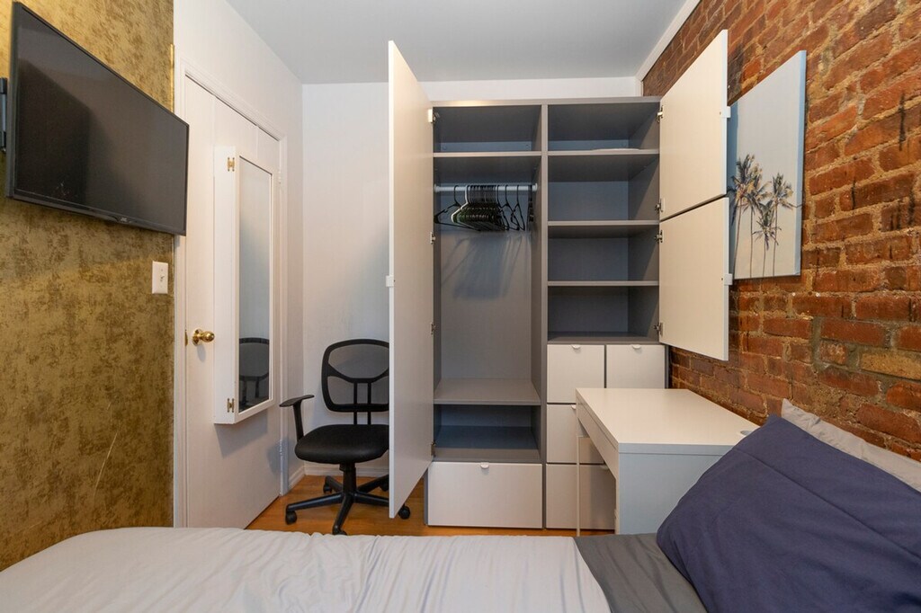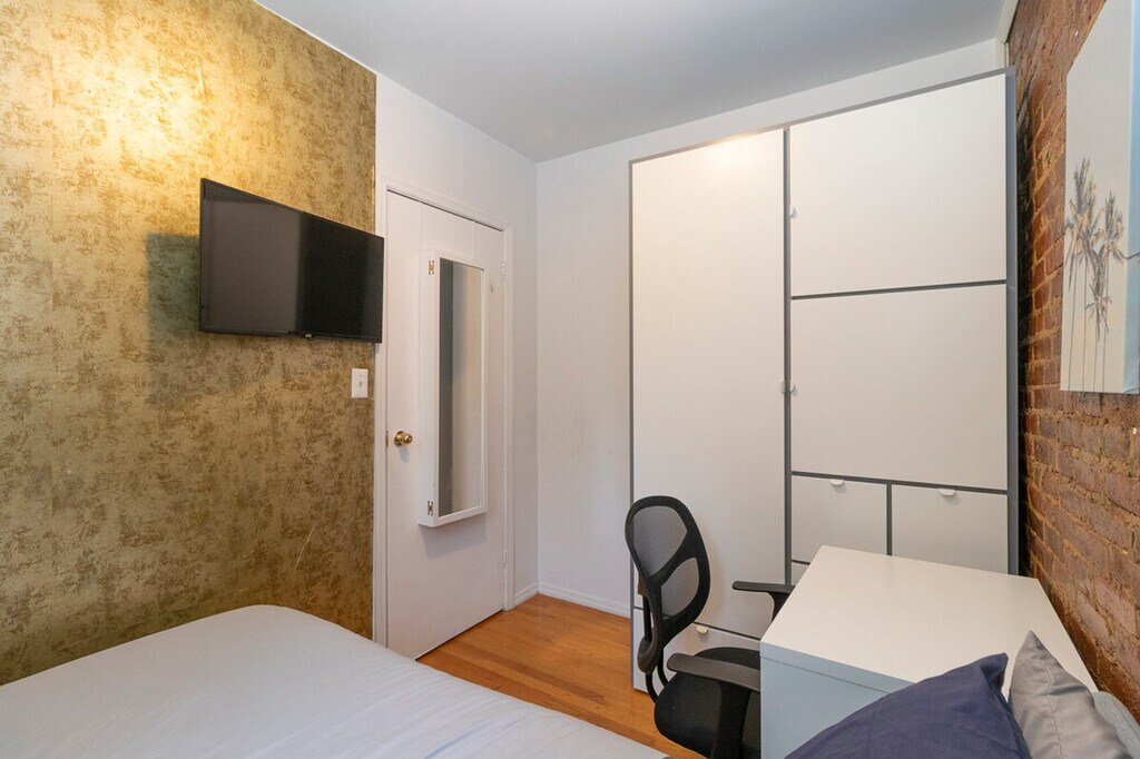 Experience a charming apartment in the heart of the Upper East Side on East 94th Street between 1st and 2nd Avenue (walk-up building). Feel at home in this apartment that is perfect for couples, solo adventurers, business travelers, and families. This unit is just steps from the Q subway station, Central Park, and the Guggenheim Museum. This spacious apartment offers comfort and convenience with two separate bedrooms, a cozy living room with a dining area and a sofa bed, a bathroom, and a fully equipped kitchen. The fully equipped kitchen is adjacent to the living room and includes appliances such as a toaster, microwave, oven, electric kettle, fridge/freezer, stove and/or toaster oven and an electric plate. A flat LCD TV hangs on the wall, offering a variety of channels to enjoy through the Roku streaming TV. Clean linens and towels will be provided for your comfort. All pets must be approved in advance, and there is a pet fee ranging from $325 to $475. If you require additional cleaning during your stay, it can be arranged for an additional fee. Discover the vibrant neighborhood of the Upper East Side, where convenience and excitement converge. This area offers a wealth of highlights just steps away from the apartment. Immerse yourself in a shopper's paradise, as the neighborhood is home to renowned designer stores, giving you access to the latest fashion trends. Indulge in a culinary journey at well-known restaurants, or enjoy a night out at the nearby cinemas, comedy clubs, and coffee shops. Nature enthusiasts will delight in the proximity to Central Park, the Metropolitan Museum, and the Guggenheim Museum, offering a wealth of cultural experiences and breathtaking landscapes. Transportation is a breeze, with the Q Second Avenue/Broadway Express subway station just a few steps away, ensuring easy access to the rest of the city. Additionally, the 6 Green Line 96th Street Subway Station and the M15 cross-town bus are within walking distance, providing further convenience for your city explorations. Utilities such as electricity, gas, Wi-Fi, and streaming Roku TV are not included in the monthly rent and will cost $330 per month (between June 1st and October 1st, utilities are $360 per month). Check-in after 10 pm is subject to prior approval, and there will be a $50 late check-in fee after 10 pm and $100 after 12 am (if check-in is approved after 10 pm). If you require early check-in, late check-out, or have any special requests (e.g. additional guests, luggage storage), please submit them in writing in advance. All requests are subject to availability and may incur an additional fee if approved. As part of our standard guest verification process, the partner will request that you complete a short application and authorize a background check a few weeks prior to arrival. Instructions will be provided closer to your check-in date. Please note: A $75 application fee may apply. [SI]