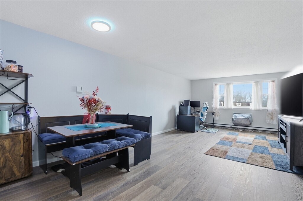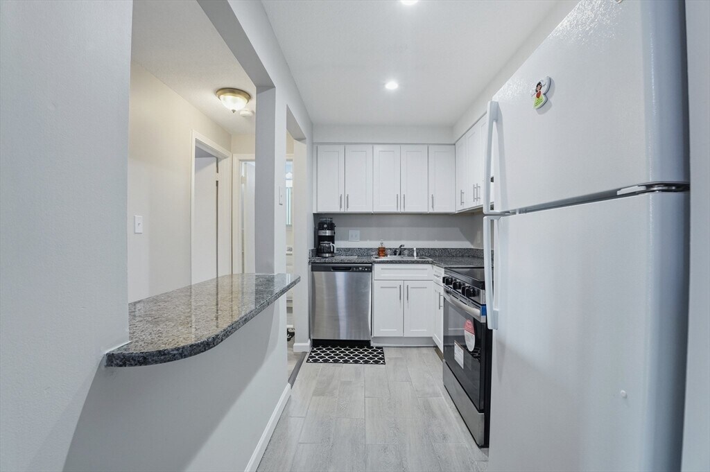 Bright and well-maintained 1-bedroom condo located in desirable Kingswood Park Village! This upper-level unit offers an open layout with a spacious living area featuring laminate flooring and great natural light. The updated kitchen includes granite countertops,upgraded cabinetry,stainless steel appliances,recessed lighting,and a breakfast bar perfect for everyday living or entertaining. The generously sized bedroom offers two closets for excellent storage. Enjoy access to community amenities including an inground pool,tennis court,and landscaped grounds. Laundry facilities are conveniently located in the building. Ideally situated near Bridgewater State University,shopping,restaurants,and Route 24—perfect for commuters,investors,or owner-occupants alike. MLS ID 73507033