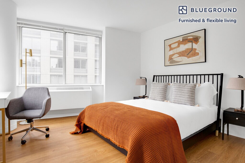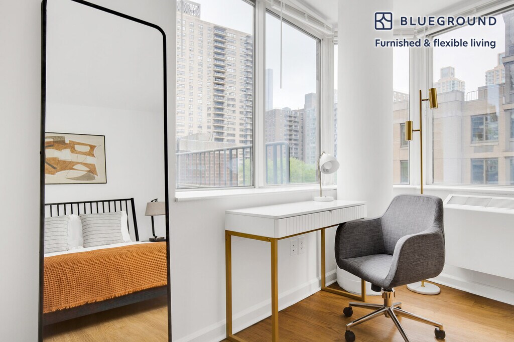 Show up and start living from day one in New York with this sophisticated two bedroom Blueground apartment. You’ll love coming home to this thoughtfully furnished, beautifully designed, and fully equipped Lincoln Square home with stunning balcony views over the city. (ID #NYC844) The advertised rate of $8,840/month is the lowest available price, based on a 12 month(s) stay with a move-in date of February 16, 2026. Rates vary depending on the duration of stay, season, and other parameters. For exact pricing and additional pricing components, please visit our website and enter your desired move-in and move-out dates. The rate is applicable when billed upfront; it can be higher if billed in multiple payments. Brokers are welcome to reach out. Were you looking for an unfurnished lease? Try Blueground instead and upgrade from unfurnished to furnished living: - Furnished at rates comparable to unfurnished - No setup or furniture costs - save thousands - Move-in ready - save time, just bring your suitcase Designed with you in mind Gorgeous furniture, fully equipped kitchen, smart TV, and a premium wireless speaker are just a few of the amenities you’ll find inside this two bedroom apartment. Ideally located in New York, you’ll find a lot to love outside as well. When you’re ready to relax, you’ll be happy to discover every Blueground bedroom comes with superior quality mattresses, luxury linens, and cozy towels. We handle everything so you can simply show up and start living. Sleeping arrangements Queen Bed, 63in/160cm Queen Bed, 63in/160cm Amenities Building amenities unique to this two bedroom apartment include an on-site: - Doorman - Dryer in building - Elevator - Washing machine in building - Lounge - Pets allowed - Playroom Arrival and ongoing support The entire apartment is yours to enjoy! Throughout your stay, you’ll have access to our Client Experience team through the Blueground App. You can schedule additional cleanings, submit maintenance requests, and view our neighborhood recommendations with just a few taps. We’ll share all details upon confirmation of your stay. Other things to note Building amenities may have an extra cost. This Blueground apartment has flexible lease options, allowing you to book it for one month, a year, or more. Pets are welcome, though weight limits and breed restrictions apply and may incur fees. Brokes CYOF. We take great pride in ensuring every photo displayed is shot in our own units with our actual furnishings. That said, we regularly refresh our decor and furniture arrangement, which may differ from what’s pictured. [SI]