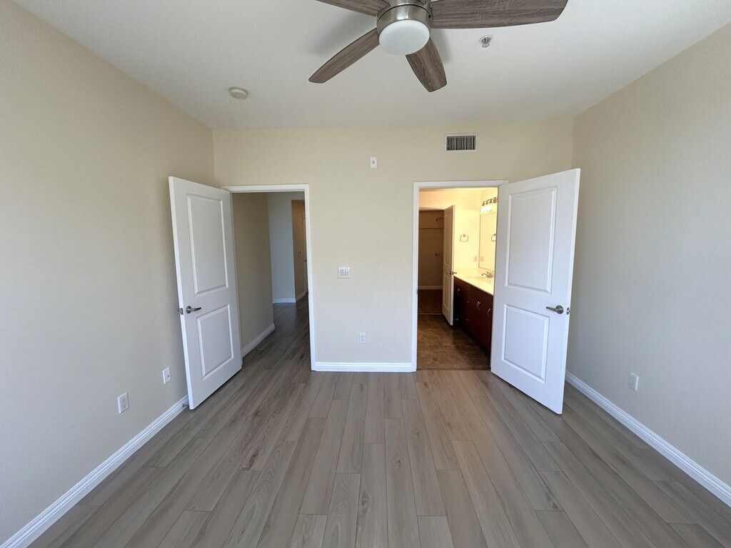 Charming condominium for rent in the exclusive Stadium Lofts community, ideally located within walking distance of Angel Stadium. This beautifully maintained unit offers 2 bedrooms, 2 bathrooms, and 1,206 square feet of living space with central air and heat. The interior is immaculate and features fresh paint, wood flooring, quartz countertops, stainless steel appliances, recessed lighting, double-pane energy-efficient windows, a tankless water heater, ceiling fans, custom window shutters, a private balcony, and cable-ready wiring throughout. The spacious primary bedroom includes a large walk-in closet. This gated community also provides two assigned parking spaces, a community pool, and a clubhouse/recreation room, all within close proximity to a variety of restaurants and entertainment options. Conveniently located near E. Katella Avenue and S. State College Boulevard in the City of Anaheim. SCHOOL DISTRICT: Anaheim Union High School District UTILITIES: Water & Trash Included. Tenant pays all other utilities PET POLICY: Small pets may be allowed. Submit photo(s) w/applications