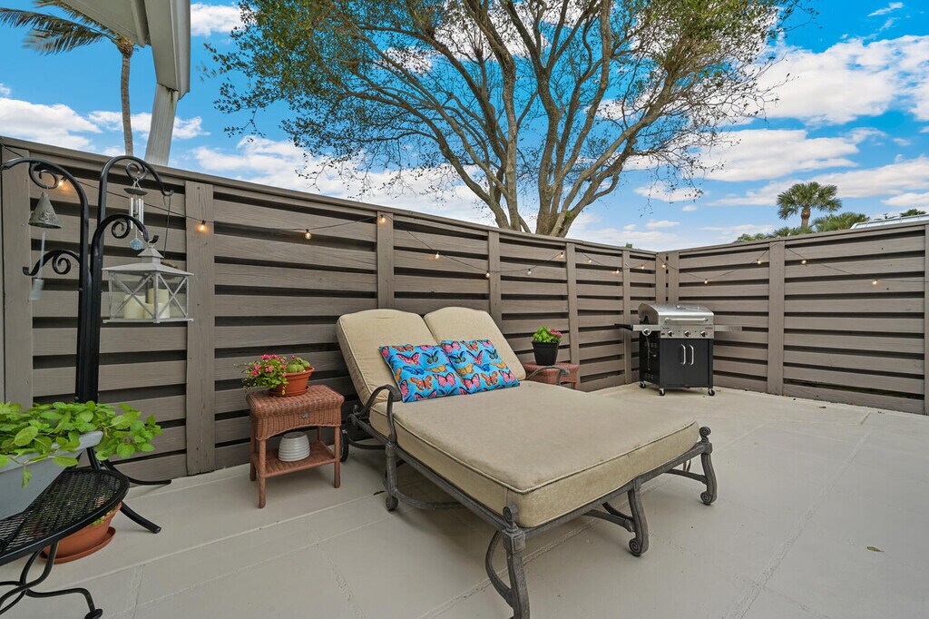 New to market! Available January, February, and March of 2026. Welcome to your very own seaside oasis. Oceanside Terrace is a quiet, gated community in an ideal location with a short walk to Jupiter beach and the Riverwalk. Walk to local shops and restaurants. You will LOVE this 2 BR / 2 Bath, split floor plan, ONE STORY villa that has been completely renovated. The master bedroom has a king-size bed while the guest room has a queen. The large custom kitchen boasts high-end finishes and appliances. The vaulted ceilings give this villa a spacious feel. Enjoy your large private courtyard with the heated community pool only steps away. Small dog okay. Wi-Fi and DirecTV included.