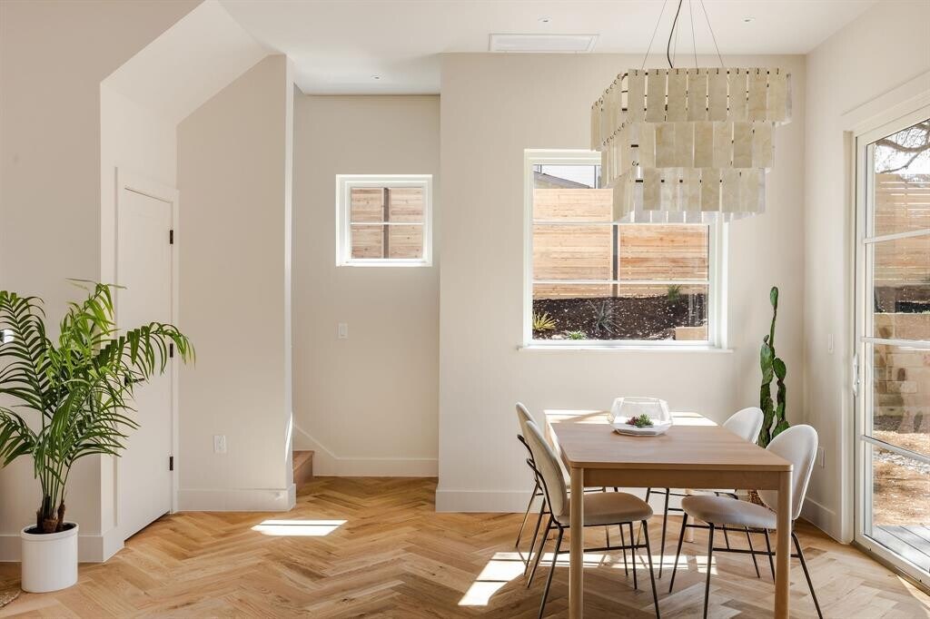 - Additional Property Details- Stunning compound with 4 bedroom spaces and 4.5 total bathrooms with a detached 1bedroom/1bathroom studio with kitchenette perfect for office, guest, home gym! Arrive to the home quickly from the airport or downtown and enjoy the heart of East Austin and Mueller within 10 minutes drive! The main house features a magazine-perfect main floor with a bold dark color scheme and classically elegant herringbone white oak flooring. The Chef's kitchen has a gourmet package, copious use of beautiful quartz and tons of natural light pouring in through the southwest exposure Andersen windows and lovely 8 foot sliding door. The eat-in kitchen leads directly to a private and lush backyard. On the second floor, find two more bedrooms, one of which with an ensuite bathroom, and a second full bathroom. On the third floor you will find an additional flex space with a full private bathroom. This unit also has a detached one-car garage with a private guest suite/studio/flex space above that has another full bathroom, walk-in closet, and living area with kitchenette. The garages also include hookups for a secondary washer/dryer! The high quality construction of this home is evident throughout! Take note of the spray foam insulation, high quality millwork, Andersen casement-style windows, chic 2 dimmable recessed lighting and designer finishes throughout. Smart home features include already installed Nest doorbell and thermostats." - 1802 Overhill Dr- $3,8754 Beds, 5 Baths, 2149 sq ftAvailable Now- Availability Details- Price - Availability Date - Unit - Sq Ft - $3,875 - Available Now - 1802 Overhill Dr - 2149 sq ft - Model Amenities and Features- Kitchen- Dishwasher