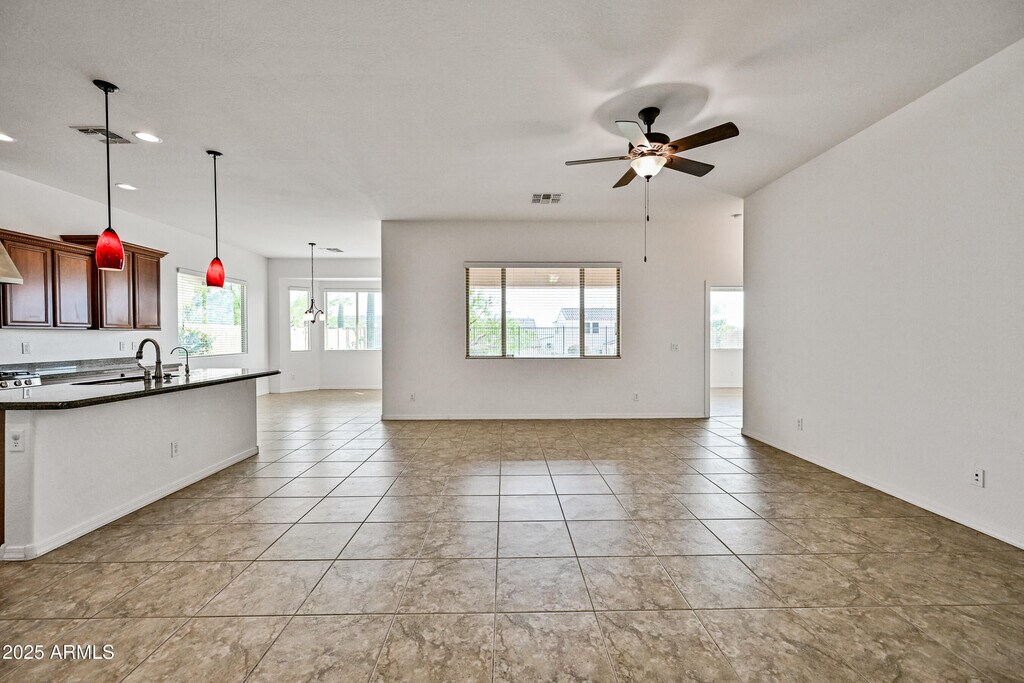 For a faster response to inquiries and schedule a time to tour the property, please call Ricardo . This beautifully designed home features 3 bedrooms, 2 baths, plus a den, and a spacious 3-car garage. Inside, enjoy tile floors, ceiling fans, and a soothing color scheme. The formal living room and open great room are perfect for entertaining. The kitchen impresses with stainless steel appliances, granite countertops, a prep island, pantry, and stylish lighting. Relax in the bright primary suite with plush carpet, sitting area, dual sinks, and walk-in closet. The serene backyard includes a spectacular premium view lot, covered patio and built-in BBQ. Located in Estrella, where mountain views and resort-style living meet. Pets are welcome.