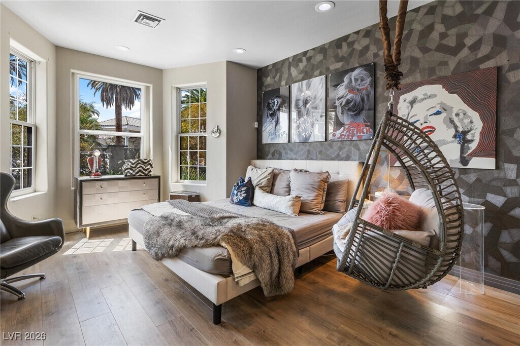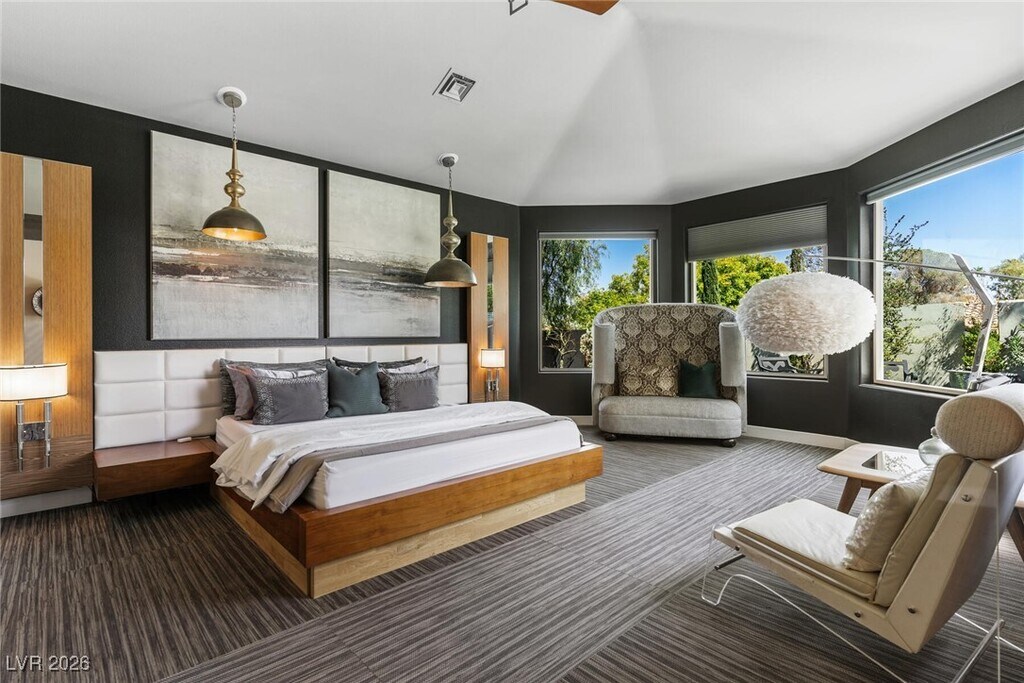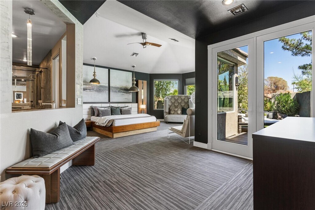 This home is an absolute masterpiece. This fully furnished 6 bed, 7 bath home was meticulously designed by one of Las Vegas' most sought after designers. Step into your own private hotel featuring high ceilings, open floor plan, luxury resort style yard, 6 en suite bedrooms, gym and more.