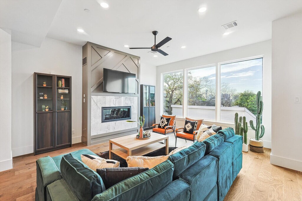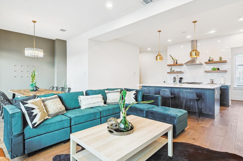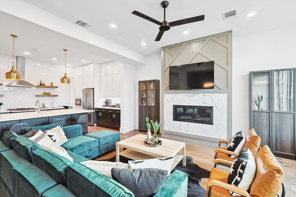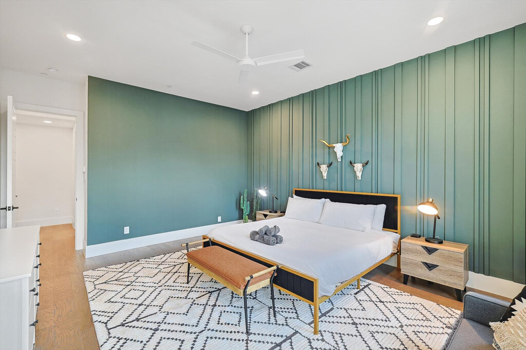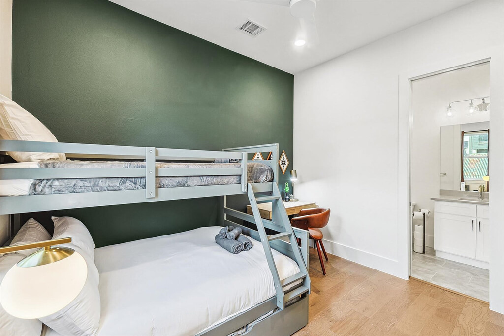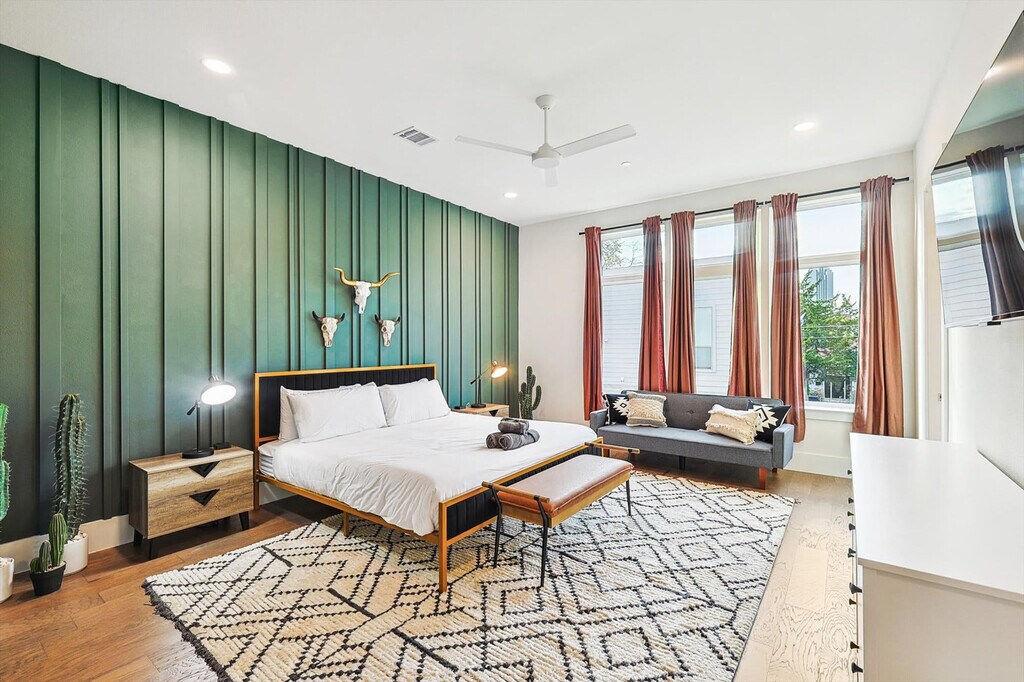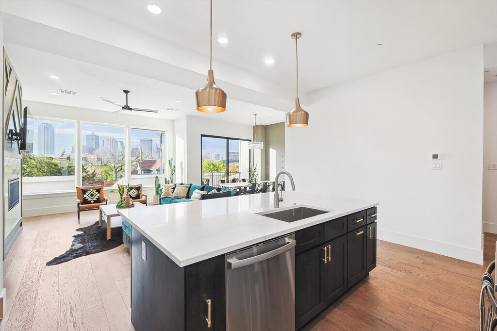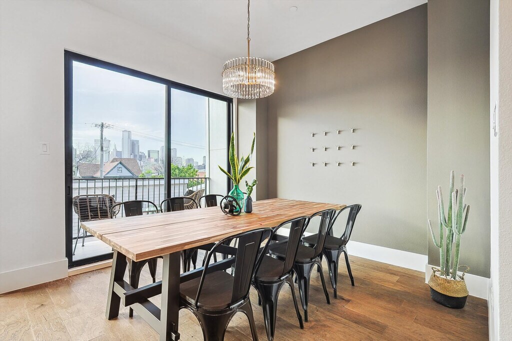 Look no further! You don’t want to miss out on this amazing opportunity to stay in one of Dallas’ most vibrant neighborhoods. Less than 1 mile to downtown and walkable to many hotspots including the Dallas Convention Center and The Cedars, this apartment offers you 4 floors of luxury living and a spacious layout as well as a rooftop deck with breathtaking views of the Dallas skyline. Featuring 3 bedrooms, 3.5 bathrooms, and a fully equipped chef’s kitchen, this home is designed for comfort and style. Welcome to your home away from home! This vacation home oozes luxury and charm from its bright, white, upgraded kitchen to all the thoughtful touches throughout the house. Primed for fun entertaining times with four floors of luxury living, a roof garden with a grill, and a breathtaking view of the Dallas skyline, you’re sure to have a swell time here. The kitchen is fully equipped for all your cooking needs with stainless appliances, including a fridge, freezer, stove, double oven, dishwasher, and microwave. Enjoy meals in the dedicated dining area or at the kitchen island with stool seating for four. Enjoy the convenience of complimentary parking in the garage and the flexibility of ensuite laundry should you need to refresh your clothing during your stay. Pets are welcome with a non-refundable pet fee of $150 per pet, with a maximum of 2 pets per stay. An additional nightly rate applies for more than 6 guests, with a $29/night fee for each extra guest. Come experience the best of Dallas! A bustling cosmopolitan known for its sports, history, BBQ, and frozen margaritas, Dallas is home to more than a dozen neighborhoods and districts that each have their own distinct vibe and attractions. From spectacular museums and performing arts venues in the Arts District to the buzzing nightlife of live music and lively bars, there’s something for everyone here in Dallas. Attractions such as the Convention Center Dallas, George W. Bush Presidential Center, White Rock Lake Park, and Deep Ellum are just a short drive away. Smoking of any type is not allowed and violations are subject to a $450 fine plus the cost to clean, deodorize, and repair damages. Check-in is at 4pm and checkout is at 10am. No parties or events are allowed. Pets should be discussed in advance; only house-trained pets are allowed and pet cleaning fees will be applied. There is a full disclosure policy for the number of people on the property at any time with security camera verification to comply with local laws and booking platform policies. Rest assured, no cameras are in any inside private areas as we respect the privacy of our guests. This apartment offers high-speed Wi-Fi and an open-concept living room layout for easy socializing and remote work-friendly environment. Registration Number: 575048