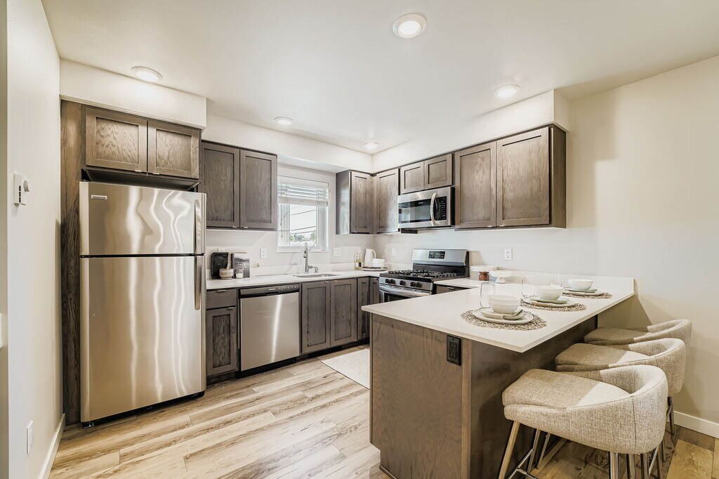 Center unit offers spacious floor plan with 1639 SF of heated living space! Home enjoys 3 Beds, 3.25 Baths, quartz counters, gas range, rustic vinyl plank flooring and heated tile floors in both upper level bathrooms! Stackable washer/dryer found in laundry room in this unit. Other charges: $5 monthly admin fee, $45 sewer charge every other month. $25 per person water charge every month. Tenant sets up own electric, cable and garbage accounts. Lovely well cared for town homes in a quiet rental community! Tons of shops and restaurants nearby on 16th Ave SW and only minutes to Westwood Village. Rare garage parking and private driveway allows space for 2 vehicles. PLEASE NOTE: First in for applications is considered once all prospective applicants for a lease have made application and have either seen the unit in person, or have made arrangement with management for a video walk-through.