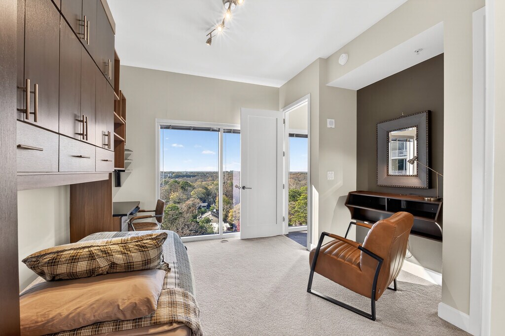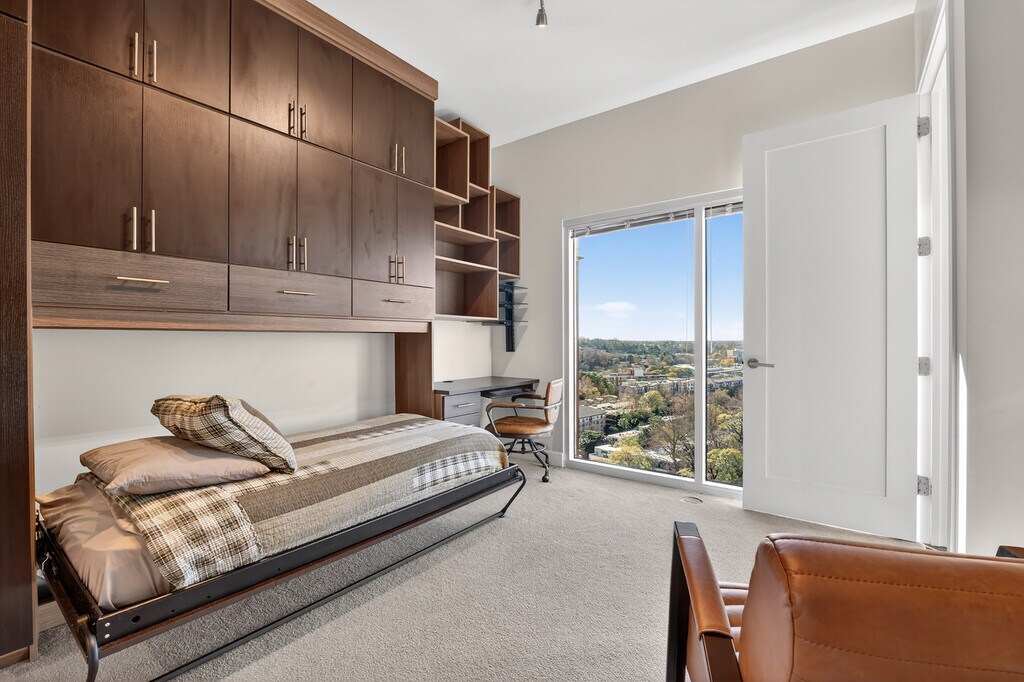 Live above it all at The Brookwood,partially furnished or unfurnished. Perched on the 11th floor,Residence 1111 frames gorgeous views of the Atlanta skyline along with serene sight-lines over the community courtyard and saltwater pool. A proper entry leads into an airy living/dining area with a private balcony,perfect for morning coffee or sunset unwinds. The sleek chef’s kitchen features natural stone counters,high-end stainless appliances,gas cooking,and generous cabinet space. Need to work from home? A thoughtfully placed office nook keeps your workspace connected but out of the way. Retreat to a calm bedroom suite with a spacious closet and a spa-inspired bath. Hardwood floors,lofty ceilings,and floor-to-ceiling windows elevate everyday living. The Brookwood is Atlanta’s premier LEED-Certified residential tower,ideally situated for easy access to both Midtown and Buckhead and just minutes to the Northside Beltline Trail,dining,and shopping. Resort-style amenities include a state-of-the-art fitness center,saltwater pool,club room,business center,outdoor fireplace & grills,billiards room,dog park,temperature-controlled wine storage,two guest suites,and 24/7 concierge & security,plus secure garage parking. Come see why the Brookwood remains the gold standard for convenience and luxury living.