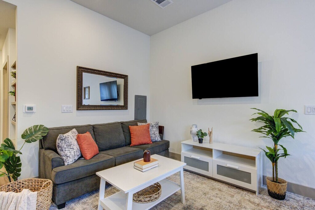Feel at home in this cozy studio apartment, ready to host your adventures in west Houston. It's a short drive to Katy, TX, and the Houston Energy Corridor. This carefully crafted apartment is designed to accommodate solo travelers, couples, and small families. It features a modern king-size bed with plenty of pillows, central AC and heat, and a fully equipped kitchen with a blender, Keurig coffee maker, and toaster. Centrally located in the vibrant 77084 neighborhood, this studio offers a peaceful retreat close to everything you need. The area blends suburban charm and urban convenience, featuring diverse dining, shopping, and lush green parks. It's close to major attractions and essential services, as well as being within walking distance of Texas Children's West Campus and Houston Methodist West Campus. Only one fob will be provided. I cannot be held responsible for any failure in shared amenities, and there will be no refunds due to failures in shared amenities. Please pay careful attention to the check-in info provided. Includes a workstation for business travelers and conference visitors. [SI]