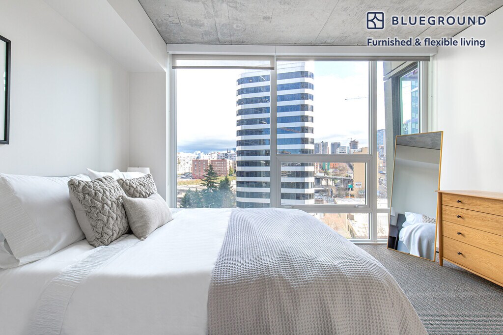 Discover the best of Seattle, with this two bedroom apartment in Denny Triangle with balcony views over the city. It’ll be easy to simply show up and start living in this airy furnished apartment with its fully equipped kitchen, sophisticated living room, and our dedicated, on-the-ground support. (ID #SEA82) The advertised rate of $5,030/month is the lowest available price, based on a 1 month(s) and 28 day(s) stay with a move-in date of April 14, 2026. If you’re looking for a 1-year stay, the rate is $4,660/month. Rates vary depending on the duration of stay, season, and other parameters. For exact pricing and additional pricing components, please visit our website and enter your desired move-in and move-out dates. The rate is applicable when billed upfront; it can be higher if billed in multiple payments. Brokers are welcome to reach out. Were you looking for an unfurnished lease? Try Blueground instead and upgrade from unfurnished to furnished living: - Furnished at rates comparable to unfurnished - No setup or furniture costs - save thousands - Move-in ready - save time, just bring your suitcase Designed with you in mind Gorgeous furniture, fully equipped kitchen, smart TV, and a premium wireless speaker are just a few of the amenities you’ll find inside this two bedroom apartment. Ideally located in Seattle, you’ll find a lot to love outside as well. When you’re ready to relax, you’ll be happy to discover every Blueground bedroom comes with superior quality mattresses, fully stocked linens, and cozy towels. We handle everything so you can simply show up and start living. This apartment also offers in-apartment laundry. Sleeping arrangements King Bed, 70.8in/180cm Queen Bed, 63in/160cm Amenities Building amenities unique to this two bedroom apartment include an on-site: - Doorman - Dryer - Elevator - Swimming pool - Washing machine - Media room - Parking - Pets allowed - Rooftop BBQ Arrival and ongoing support The entire apartment is yours to enjoy! Throughout your stay, you’ll have access to our Client Experience team through the Blueground App. You can schedule additional cleanings, submit maintenance requests, and view our neighborhood recommendations with just a few taps. We’ll share all details upon confirmation of your stay. Ideally Located This furnished apartment is located in Denny Triangle, referring to the triangle-shaped area formed by Denny Way, Olive Way, and 5th Avenue. As the home of the Amazon Seattle headquarters, this area is a thoroughly developed business hub, full of high rise offices and condos. There’s no shortage of dining options here, offering practically every cuisine for lunch or dinner. This neighborhood is ideal for walking, and the central location makes it easy to go on foot to Downtown, South Lake Union or Capitol Hill. To get around, the King Country Metro Route 8 will be your guide. Other things to note Building amenities may have an extra cost. This Blueground apartment has flexible lease options, allowing you to book it for one month, a year, or more. Pets are welcome, though weight limits and breed restrictions apply and may incur fees. Parking is offered based on availability and is subject to a fee. We take great pride in ensuring every photo displayed is shot in our own units with our actual furnishings. That said, we regularly refresh our decor and furniture arrangement, which may differ from what’s pictured. Also note - There have been reported instances of homeless populations nearby - This apartment is located on a busy street - Ongoing construction in close proximity; construction sounds may occasionally be heard [SI]
