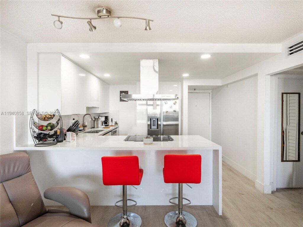 Located on the top floor with unobstructed Miami sunset views, this fully remodeled 1 bedroom 1 bathroom apartment is for rent. This condo features waterproof laminate floors throughout, a completely remodeled kitchen with waterfall quartz countertops, matching backsplash, and new stainless steel appliances. Off the kitchen you enter an open concept living/dining area offering you a flexible space to design to your lifestyle. Remodeled bathroom with stand up shower allow for a resort style feeling. Enjoy floor to ceiling windows allowing plenty of natural light in during the day, and in the evening enjoy new custom blackout shades. Lastly, enjoy a private, oversized balcony to take in the breathtaking sunsets. MLS # A11940858