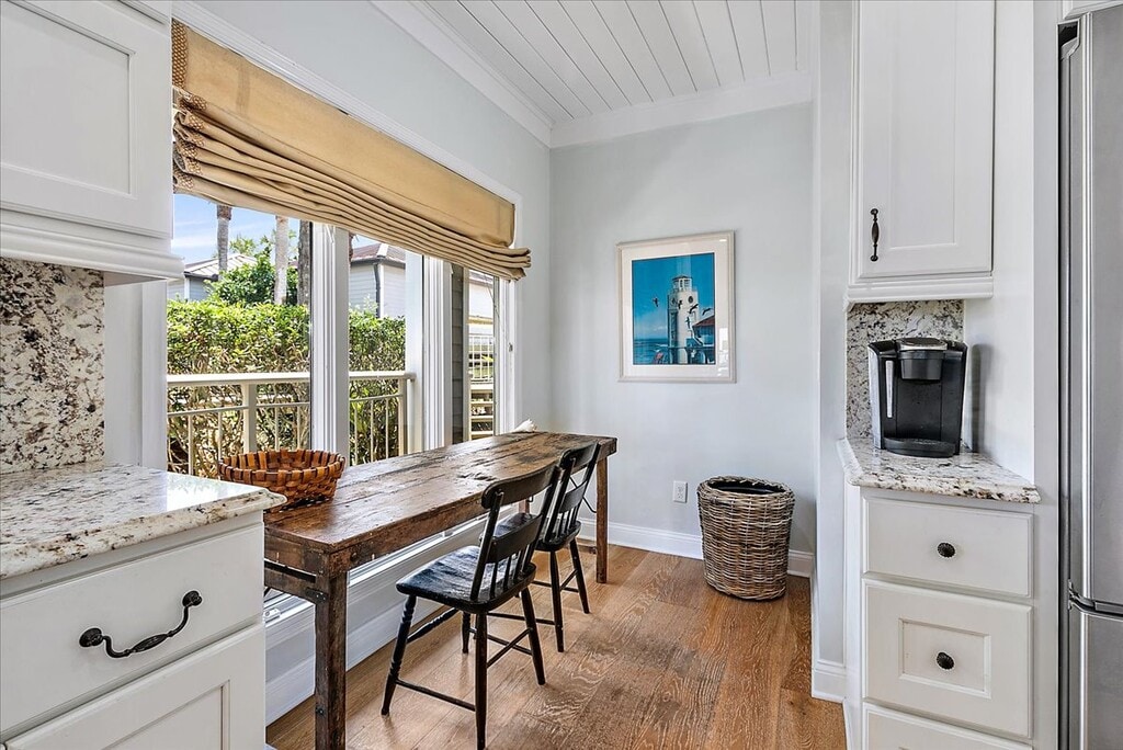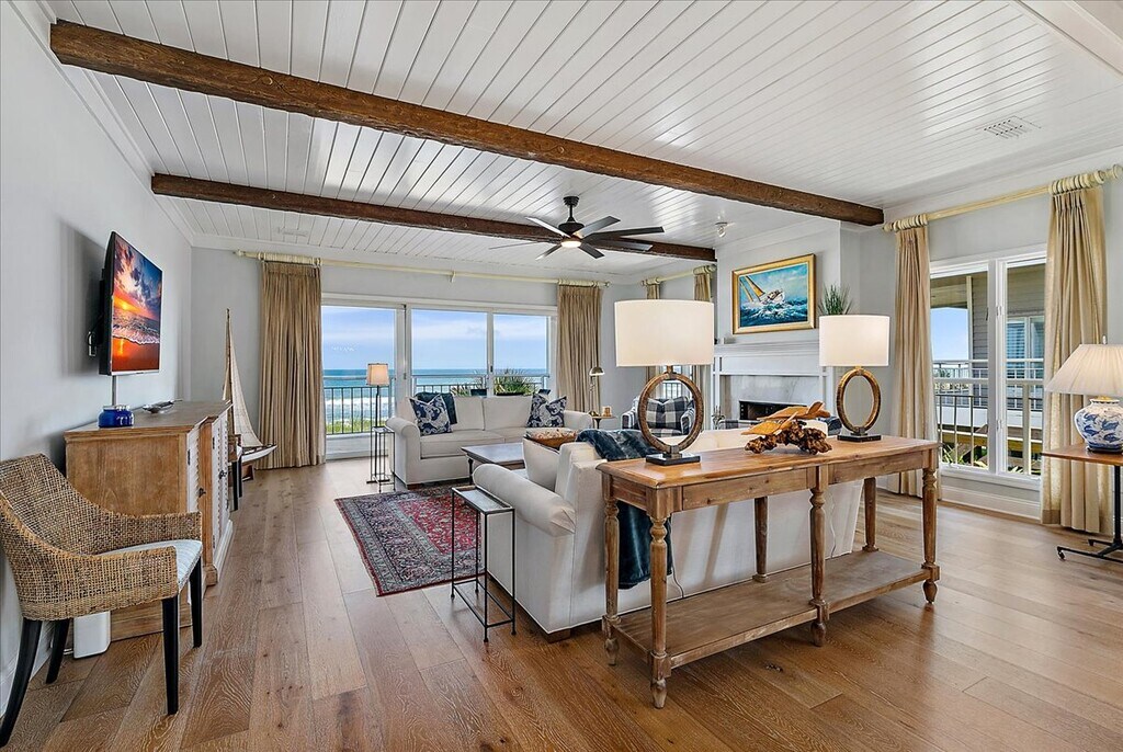 Available January 1 2026 . Beautiful furnished 3 bedroom/3bath oceanfront condo in gated Sea Hammock. This residence offers coastal elegance and modern luxury, all steps away from a private beach access. Owner's suite with ocean views offers a free-standing tub, walk in shower, walk-in closet, plus slider to balcony. Wood flooring throughout and a wrap-around wood deck. Additional features include an ice maker, wine fridge, cable, and a day bed in the hallway for extra guest or cozy reading spot. Experience an ultimate beachfront lifestyle. Condo also has a single garage next to unit. Minimum rental is 3 months.