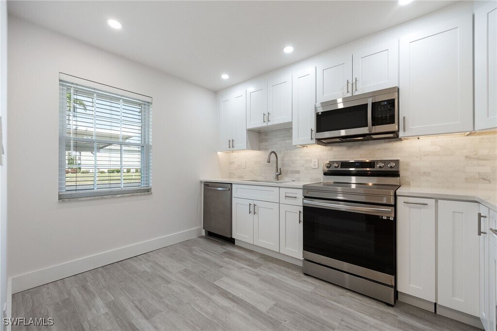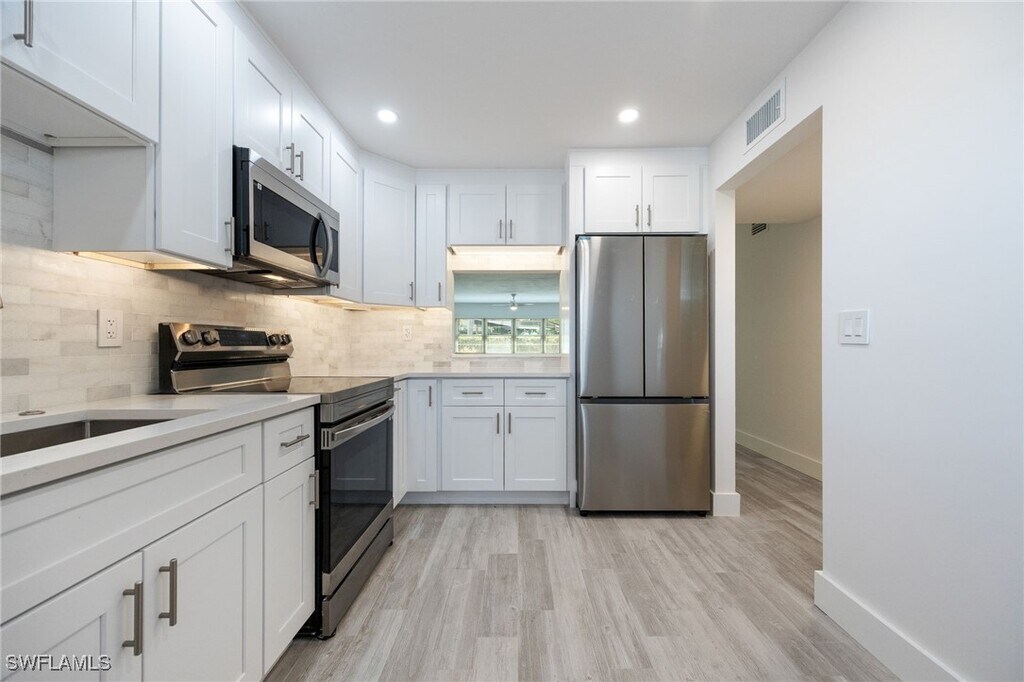 Stunning remodeled condo from top to bottom! Beautiful new flooring,kitchen cabinets-under cabinet lighting,backsplash,appliances,disposal,bathroom showers,vanities,air-conditioner,washer-dryer! Kitchen has upgraded cabinets: spice pull-out and lazy-susan pan/small appliance cabinet. New fans in all rooms. along with blinds on window. Bedrooms are very nice sized. Building just painted and new roof. This wonderful community is hidden away,yet close to everything! Shopping,theaters,restaurants and beaches. The clubhouse has a nice kitchen for parties,big screen tv,numerous tables and chairs - lots of entertaining space. You will fall in love with the condo and it's surroundings! Buy or Rent.