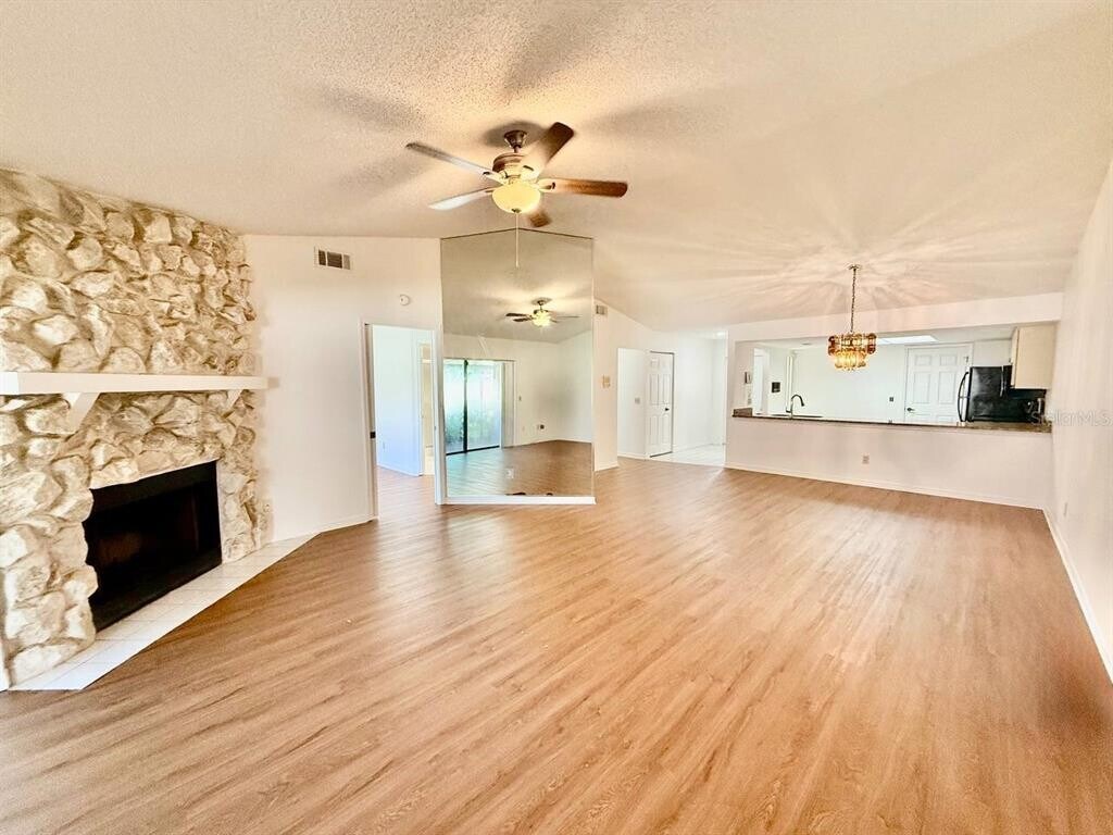 Welcome to this beautifully maintained 2-bedroom, 2-bath villa with a one-car garage, located in the desirable community of Pebble Creek in Tampa Palms. This home features an open floorplan with wood-look laminate flooring throughout and ceiling fans in every room for year-round comfort. The spacious living area is highlighted by a decorative fireplace, creating a cozy and inviting atmosphere. The kitchen offers granite countertops, ample cabinetry, and a functional layout perfect for cooking and entertaining. Glass sliders lead out to your private, screened-in patio an ideal space to enjoy your morning coffee or unwind with a book while taking in the peaceful outdoor surroundings. The primary suite includes a walk-in closet and a well-appointed en-suite bathroom. The secondary bedroom and bath provide flexibility for guests, a home office, or additional living space. Washer and dryer included for your convenience. Conveniently located near top-rated schools, shopping, dining, and major roadways, this villa offers the perfect combination of comfort, style, and convenience. Don't miss your opportunity to live in one of Tampa Palms most sought-after communities schedule your private showing today! In addition to the advertised base rent, all residents are enrolled in the Resident Benefits Package (RBP) for $50.00/month which includes HVAC air filter delivery, credit building to help boost your credit score with timely rent payments, utility concierge service making utility connection a breeze during your move-in, and much more! More details upon application. Sorry, no pets. Vacant and Available now! Ceramic Tile Granite Counter Hoa Patio Screened Patio Covered Screened Patio Wood Flooring Laminate