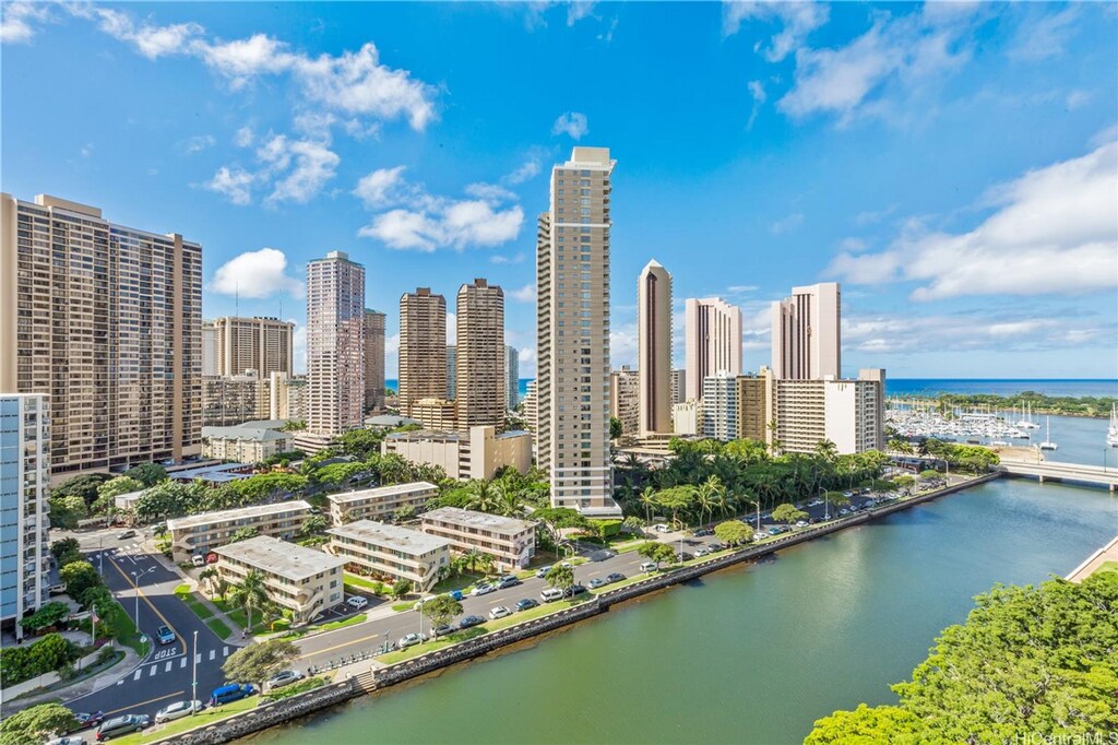Rare high-floor corner unit with breathtaking panoramic views of the Ala Wai Canal, ocean, and Honolulu Harbor. Enjoy in-unit washer/dryer, dedicated parking stall, and resort-style pool access. Steps from Waikiki’s beaches, Ala Moana Center, dining, and entertainment. Elevated, convenient island living—your perfect Hawaii home awaits!
