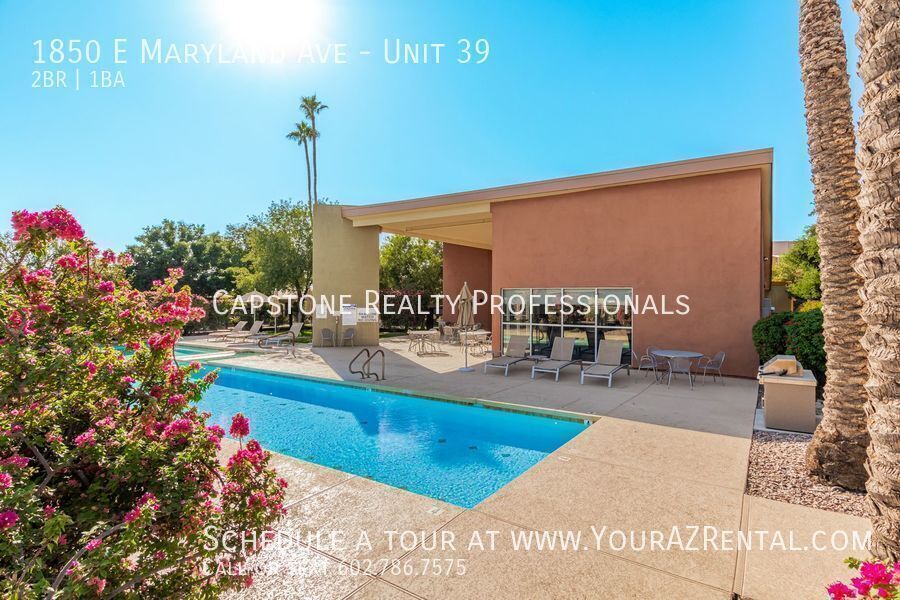 Experience the ultimate urban retreat in this meticulously designed 2-bedroom, 1-bathroom residence located in a premier gated community in the heart of vibrant Phoenix! This modern home offers the perfect blend of security, style, and resort-quality amenities, making it a standout choice for those seeking a high-end lifestyle. Step inside to an abundance of natural light that showcases the sleek tile flooring flowing throughout the living spaces. The heart of the home is the well-appointed kitchen, featuring elegant granite countertops, a gas cooktop, and modern appliances—a true rarity for condo living! The open floor plan seamlessly unites the dining and living areas, creating a spacious and inviting ambiance perfect for entertaining. Enjoy the Arizona weather on your private patio, or take advantage of the convenience of your in-house laundry facility, complete with a stackable washer and dryer. Resort-Style Community Amenities: Elite Recreation: Dive into the 25-meter heated lap swimming pool or unwind in the luxurious 12-person spa/jacuzzi. Fitness & Fun: Stay active in the state-of-the-art fitness center and host gatherings in the stylish community clubhouse. Outdoor Living: Enjoy meticulously landscaped grounds and a dedicated BBQ grill area for weekend cookouts. Security: Peace of mind in a secure gated community. Property Highlights: Sleek Interior: Modern tile flooring (no carpet!) and granite countertops. Chef’s Kitchen: Features a gas range and ample prep space. Natural Light: Large windows throughout for a bright, airy feel. Convenience: In-unit washer/dryer and a private outdoor relaxation space. Unbeatable Phoenix Location: Perfectly situated for outdoor enthusiasts and city lovers alike! You are in close proximity to some of Phoenix's finest hiking trails, delectable restaurants, and lush city parks. This central location provides effortless access to the best shopping and entertainment the Valley has to offer. This modern gem is the perfect place to call home—schedule your tour today! -- Monthly Fee: Resident Benefit Package $49.99 Security Deposit: Equal to one months rent Cleaning Deposit: $275.00 Pet Deposit: $200.00 per pet One Time Lease Administrative Fee: $150.00 Built In Bbq Carbon Monoxide Detectors Dryer Heated Pool Laminate Flooring Smoke Detectors Washer