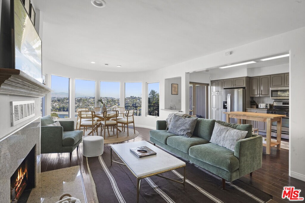 Escape the hustle and bustle of city life and experience true peace and tranquility in this stunning 3 bedroom, 3 bath home perched on a quiet street above the Silver Lake Reservoir. With its wall of windows and airy, open floor plan, this home is flooded with natural light and offers breathtaking panoramic views from nearly every room. Step inside and you'll immediately be struck by the sweeping views and the bright, welcoming atmosphere. The spacious living area is perfect for entertaining or relaxing, while the adjacent dining area offers ample space for hosting dinner parties or enjoying casual meals with family and friends. The primary bedroom is a true luxury retreat, featuring a spa-like en-suite bath and large windows that provide stunning views of the reservoir and the surrounding hills. A decorative fireplace, seating area, walk-in closet, and private balcony complete your oasis in the sky. Two additional spacious bedrooms offer comfortable accommodations for guests or family members, and can easily be converted into a home office or creative space to suit your needs. Outside, you'll find two private balconies and a huge deck with breathtaking views that's perfect for enjoying morning coffee, soaking up the sun in the afternoon, or enjoying dinner under the night sky. You'll feel like you're on top of the world every time you come home. This incredible home offers the ultimate in Southern California living - a peaceful retreat above the hustle and bustle of the city, yet just minutes away from the vibrant dining, shopping, and entertainment options of Silver Lake and beyond. Don't miss out on this rare opportunity to experience the best that this beautiful neighborhood has to offer. MLS# 26656351