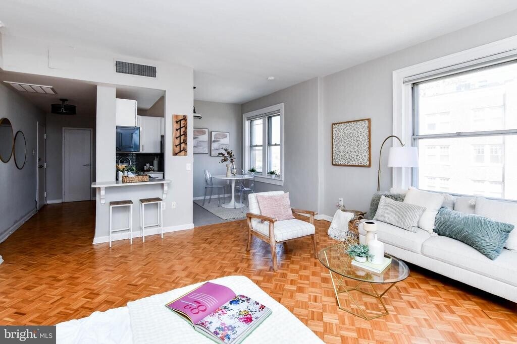 Corinne MerzeraudBright, Spacious Penthouse with city views. This 1 bedroom apartment features a newly renovated open kitchen with stainless steel appliances, high ceiling, original hardwood floor throughout, built-in bookhelves, ample closets, central AC/heat. Hosted by a beautiful historic condominium building in fantastic neighborhood and in the heart of it all. ALL Utilities included (except cable TV/Wifi). OTHER FEATURES: - Elevator - Enhanced security entry system with key fobs. - Secure Bike room with extra fees. - Close to 2 metro stops (Woodley Park Zoo and Dupont Circle) and lots of transportation available in the heart of Kalorama/ Adams Morgan neighborhood. - Restaurants and shops steps away: Organic Market, Safeway, CVS pharmacy, Starbucks and much more! - Minutes away from the Rock Creek Park and National Zoo. -$150 move-in fees. Minimum 12 months lease, $150 move-in fees, No smoking allowed.