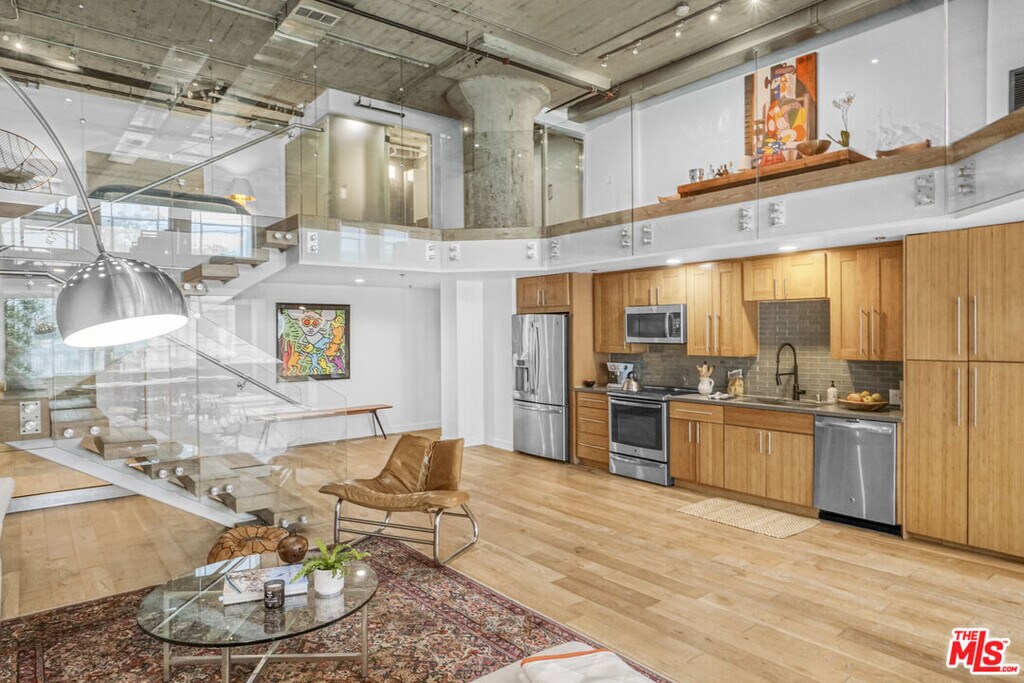 Come live in this fabulous industrial, and modern Loft at Toy Factory! This open unit features 12-foot high ceilings, polished concrete floors, oversized windows with lots of natural light, and a spacious suite that can be used as a live/work space. The unit has been upgraded with new appliances, including a new smart fridge, Nest thermostat, and washer/dryer combo in the closet. Perfect for creatives! Unit includes an assigned parking spot in gated garage and also has an EV charger. The building offers a large garden on the top level, a large rooftop pool and deck with views of DTLA, gym, 24-hour front desk and security, secured entry parking, and is permitted as a live/work building. Located in the trendiest part of Arts District and is walking distance to many restaurants, cafes, shops, and the Soho Warehouse. MLS# 25625343