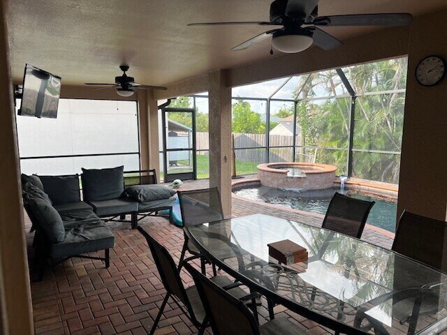 ANNUAL RENTAL: Located in the desirable San Carlos Park community, this furnished 4-bedroom, 2-bathroom home offers the perfect blend of comfort and convenience. The property features a private saltwater pool, a spacious screened lanai, and a beautifully landscaped view. Inside, you'll find tile flooring throughout, an open layout, and an attached 2-car garage. This smoke-free home also includes essential services such as trash removal, pool maintenance, and lawn care. Available for a year lease starting November 15th for $3,195 per month. All Home Pointe Property Management residents, with the exception of seasonal residents, are required to pay a $60 lease preparation fee at move-in and will be automatically enrolled in the Resident Benefits Package (RBP) at $59.95 per month. This package includes liability insurance, credit building to help boost the resident's credit score with timely rent payments, up to $1M Identity Theft Protection, HVAC air filter delivery (for applicable properties), move-in concierge service making utility connection and home service setup a breeze during your move-in, our best-in-class resident rewards program, on-demand pest control, and much more! More details upon application.
