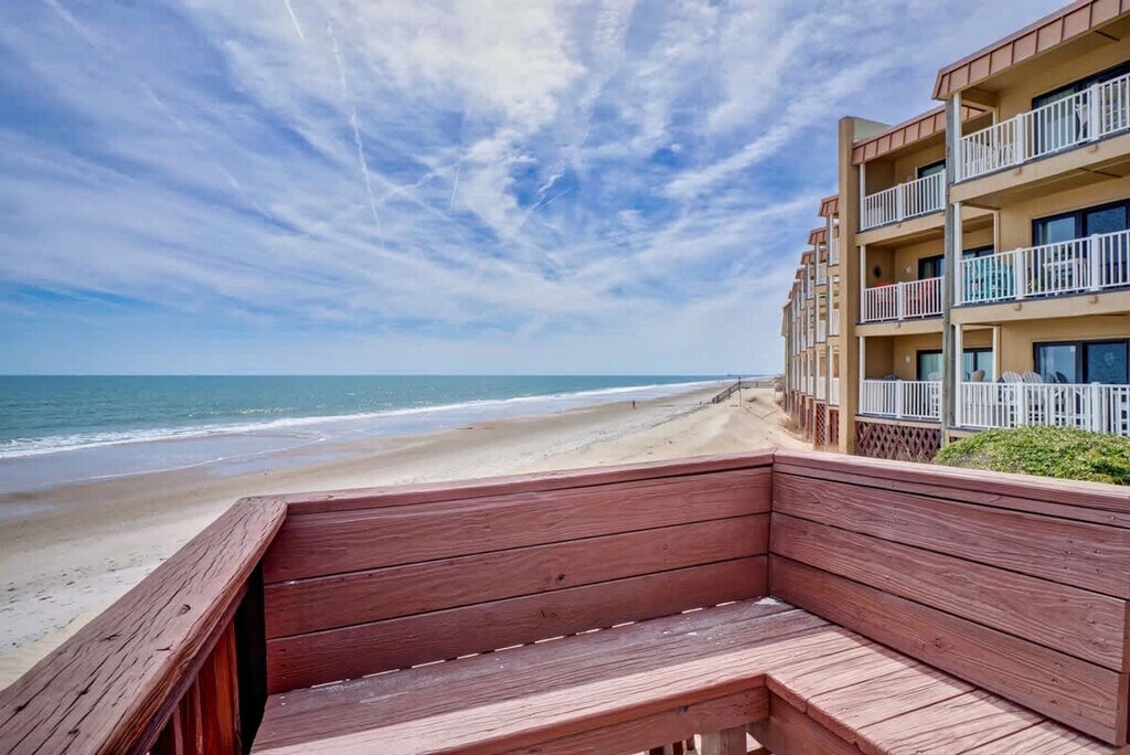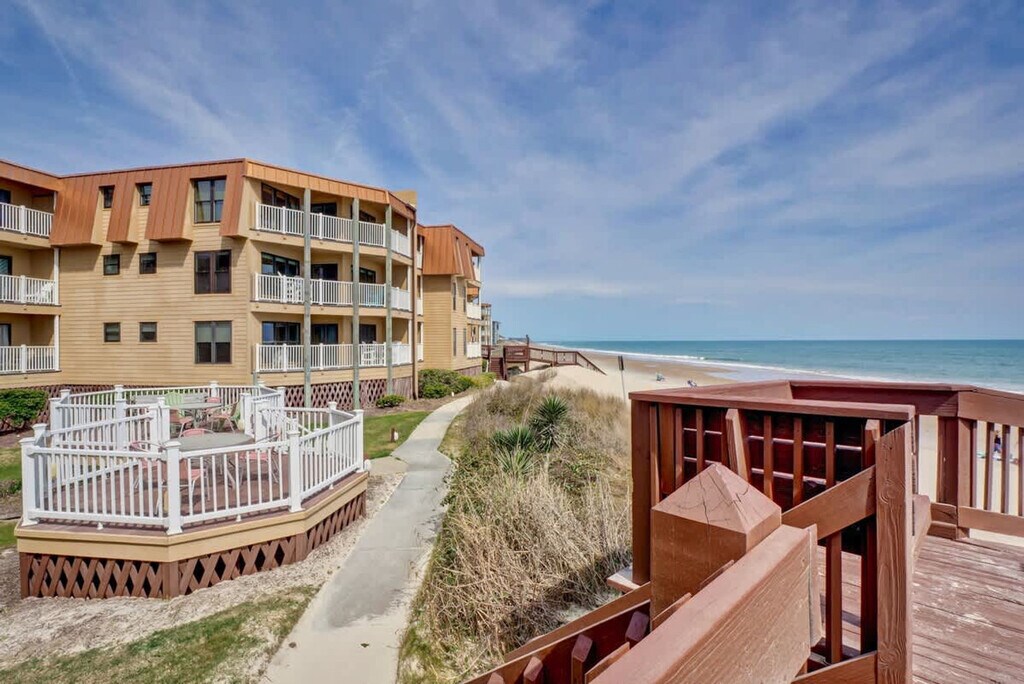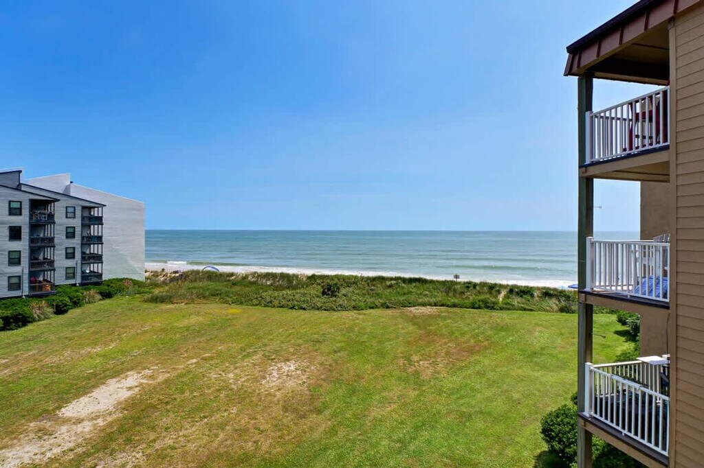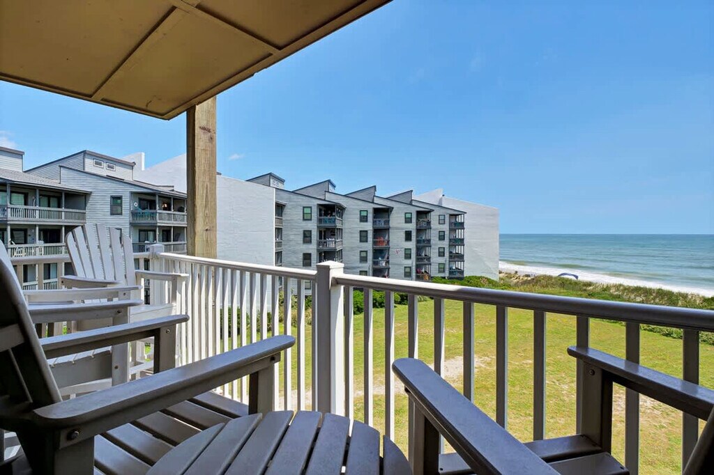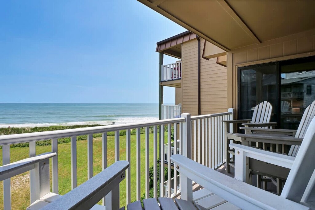 Welcome to Seascape, a beachfront property offering breathtaking sunset views and a perfect beach vacation experience. This two-bedroom apartment features a queen bedroom with a full master bath and a second bedroom with a twin-over-twin bunk bed and a full-size bed. Feel at home with a fully equipped kitchen and a dedicated desk space for remote work, all enhanced by free high-speed Wi-Fi. Enjoy the stunning views of dolphins and boats from the balcony. Seascape is designed for relaxation and enjoyment, ensuring you have everything you need for a memorable stay. The apartment comfortably sleeps six guests with its queen bedroom and cozy bunk room for kids. The fully equipped kitchen is stocked with everything needed to prepare meals, making it perfect for whipping up tasty dishes. The dedicated desk space and free high-speed Wi-Fi make it ideal for remote work. HOA-controlled pools are available for guest use from Memorial Day weekend through Labor Day weekend. Openings outside of this time will be at the discretion of the HOA. Experience the beauty of North Topsail Beach with direct beach access for sunbathing and water activities. The serene environment is perfect for families looking for a beach retreat. Enjoy nearby basketball courts and a playground for family fun. For those seeking adventure, beautiful Wilmington is just 40 miles south, offering museums, the Battleship North Carolina, Fort Fisher Aquarium, and a variety of dining options, perfect for a rainy day excursion. Quiet hours are between 21:00 and 8:00. The minimum age requirement for booking is 18. Includes a dedicated desk space for remote work with free high-speed Wi-Fi, ensuring comfort and convenience as you tackle your tasks. [SI]