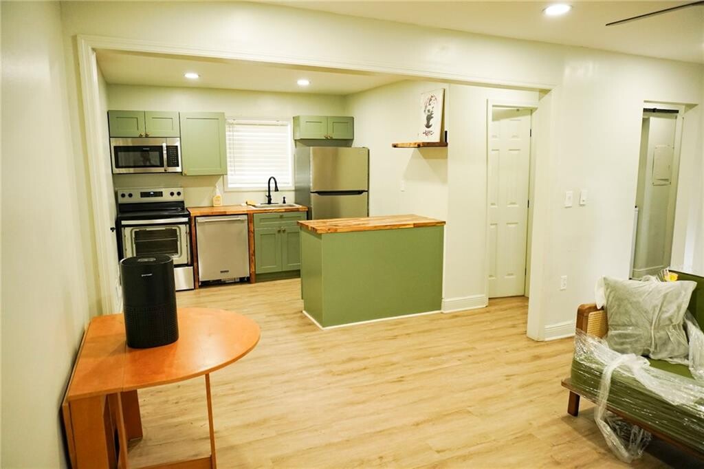 Discover modern comfort in this recently refreshed duplex located in the heart of East Point. The lower-level unit,now available for lease,offers a thoughtfully designed interior with a spacious and functional layout ideal for everyday living. The home features a standout kitchen with a large center island,perfect for cooking,casual dining,or entertaining. Contemporary finishes throughout include stainless steel appliances,sleek cabinetry,updated countertops,recessed lighting,and a clean,modern aesthetic. Both bedrooms offer ample space and include floor-to-ceiling mirrored closets,complemented by a well-appointed bathroom with updated fixtures. Conveniently located just minutes from Woodward Academy,East Point City Center,and with quick access to I-285,this property offers excellent connectivity. Enjoy nearby destinations such as Lee + White Food Hall,which connects directly to the Atlanta BeltLine,as well as close proximity to Hartsfield-Jackson Atlanta International Airport and the East Point MARTA Station. The upstairs unit is currently occupied,contributing to a stable residential setting. Additional features include off-street parking with motion sensor lighting and a private outdoor porch. The unit can also be offered furnished,subject to landlord approval. With its updated interior,strategic location,and access to key Atlanta amenities,this property presents an exceptional leasing opportunity. MLS ID 7737503